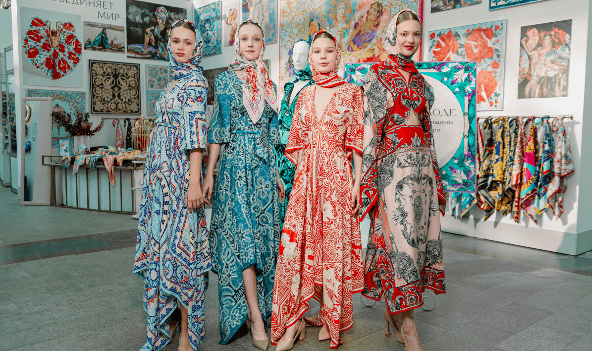 Мы представляем выставки картин-полотен «Русские в моде», целью которых является демонстрация уникального разнообразия регионов Российской Федерации, воплощенных в дизайне платков. Экспозиция направлена на сохранение и популяризацию культурных кодов российских территорий и пробуждения интереса молодёжи к народному искусству, русской природе, национальным символам. Ключевые события проекта «Русские в моде» запланированы к проведению в Музее современной истории России (Москва) и Новый Херсонес (Севастополь) в сопровождении просветительских мероприятий на тему русской идентичности, моды и патриотизма, а также состоится премьера документального фильма «Рождение платка».