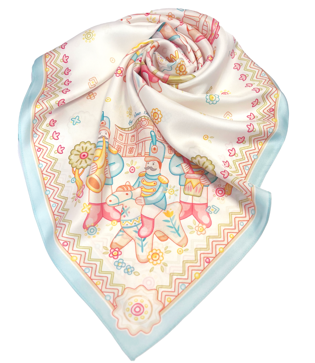 Аксессуар выполнен из 100% натурального шёлка. Платок «Старооскольская игрушка» наполнен добротой и волшебством, он непременно принесет своей обладательнице счастье и радость в Новом году!