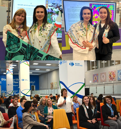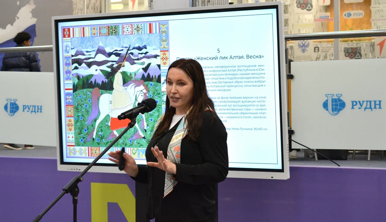 09 октября в конференц-зале Научной библиотеки РУДН состоялся вернисаж выставки «Традиции и символы России» платков-картин бренда «Русские в моде». Экспозиция объединила 22 полотна, посвященных российским символам и традициям.