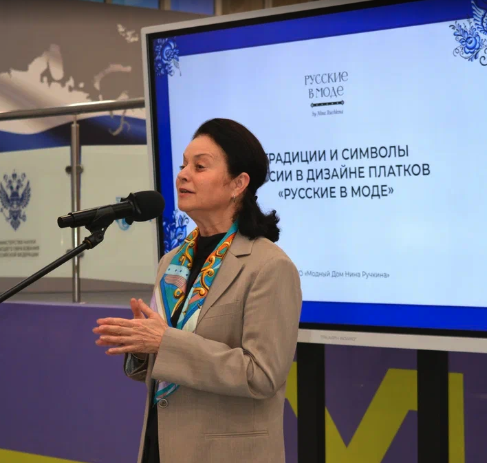 Платок – элемент традиционного костюма многих народов мира, издревле отражающий связь с народными обычаями. Выставка платков-картин «Традиции и символы России» дизайнера Нины Ручкиной раскрывает богатство уникального российского достояния через запечатленные на полотнах образы народного фольклора и искусства, изображения государственных символов, интернациональных мотивов в контексте диалога культур. «Красота объединяет мир» – слоган бренда «Русские в моде» и главный лейтмотив представленной выставки.