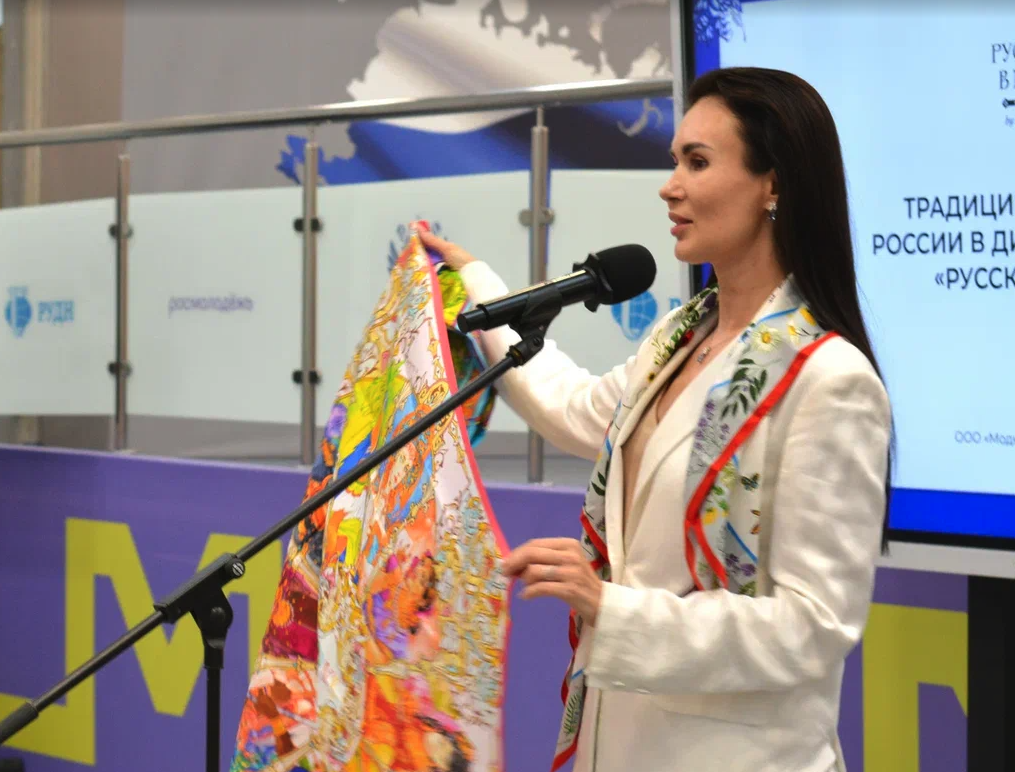 Гости мероприятия обсудили с дизайнером современные тренды и исторические аспекты платка как аксессуара, образы и смыслы представленных работ. Были заданы различные вопросы, а авторы самых интересных получили от Нины Ручкиной в подарок платки бренда «Русские в моде».