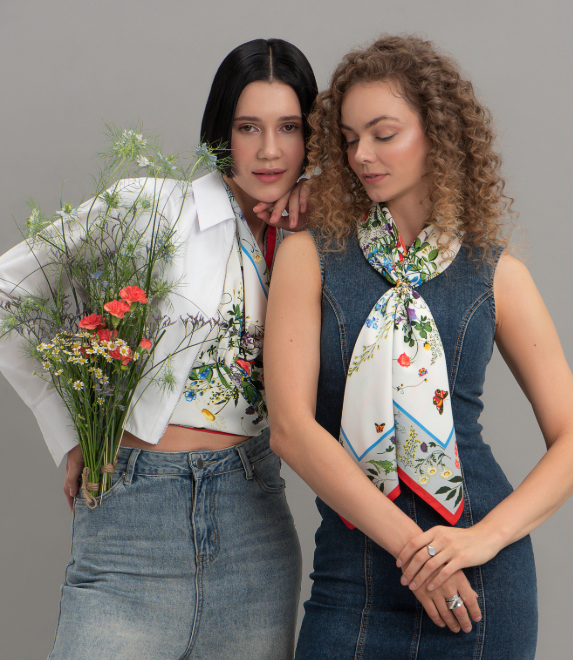 Аксессуар входит в коллекцию «Русский полевой букет», в которой представлены платки из натурального и искусственного шелка, шоппер, блокнот и кокошник, а также подарочный набор (платок и аромасвеча).