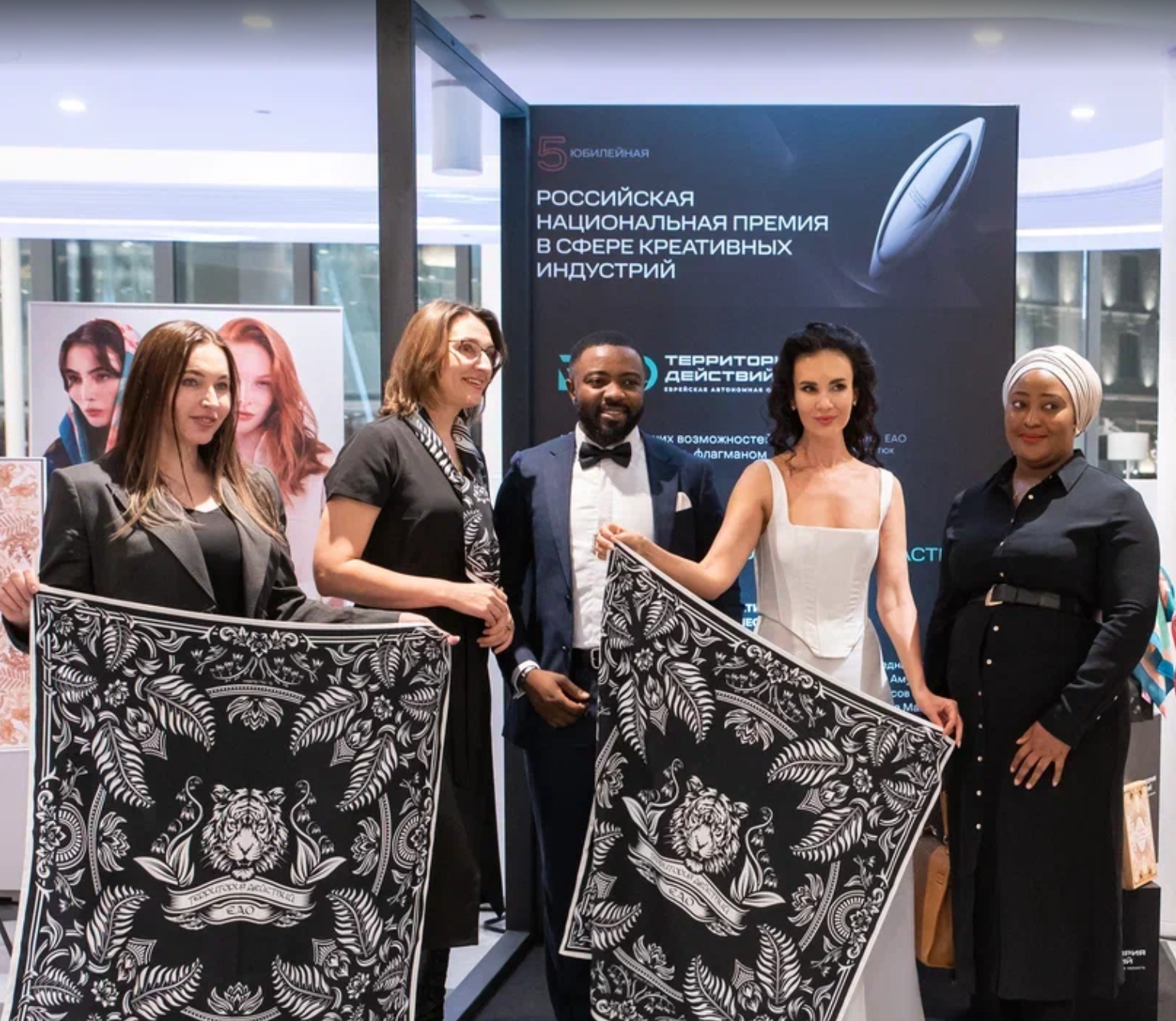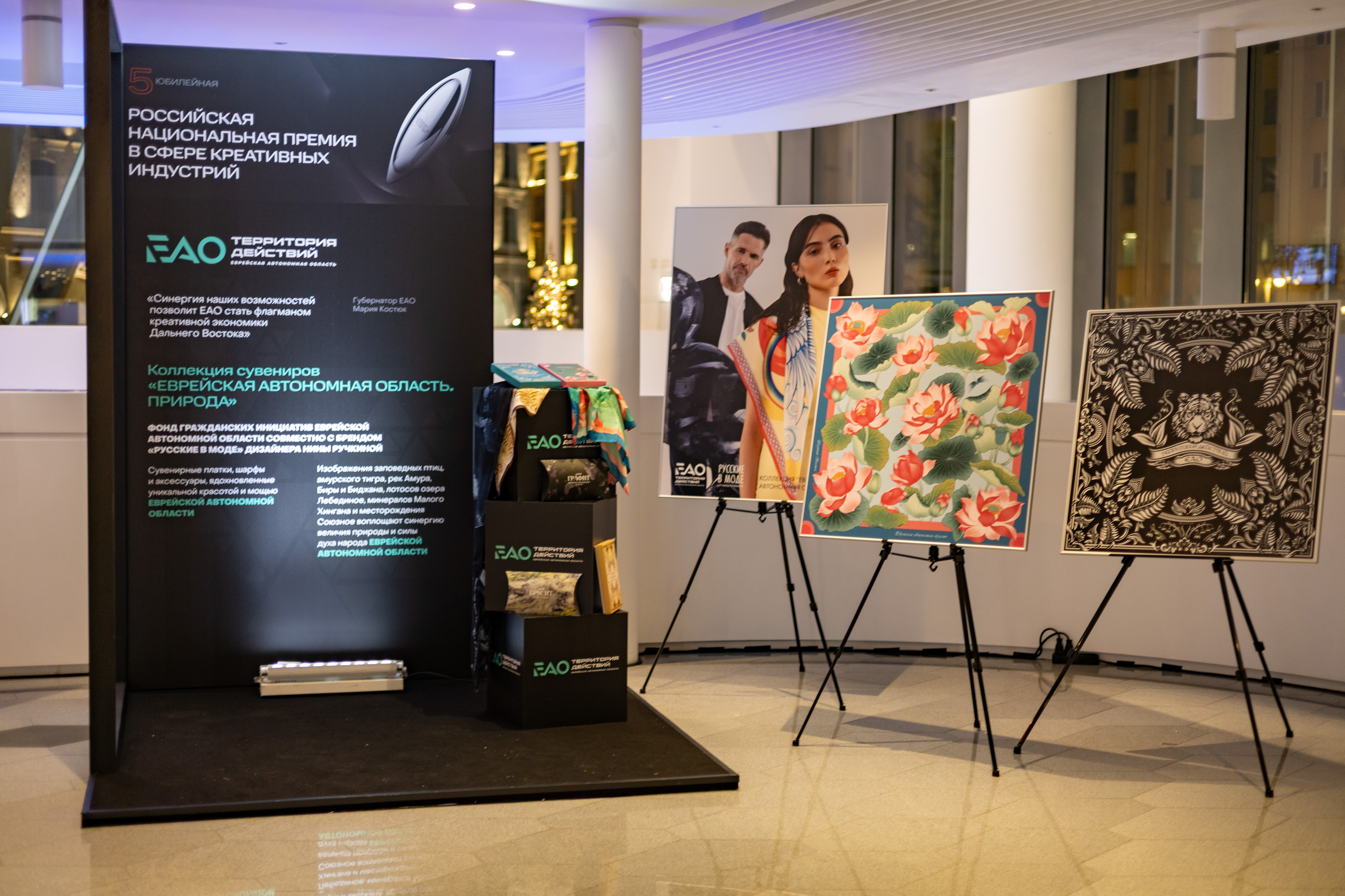 На праздничном вечере Российской национальной премии в сфере креативных индустрий аксессуары коллекции «Еврейская автономная область. Природа» стали памятными подарками для лауреатов и почетных гостей торжества. Шарфы и Платки произвели самое благоприятное впечатление, завоевав сердца аудитории.