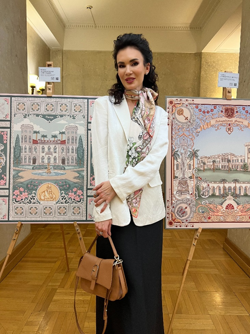 Представленные платки-картины «Русские в моде» входят в выставочный проект «Русские в моде», реализуемый при поддержке Президентского фонда культурных инициатив.