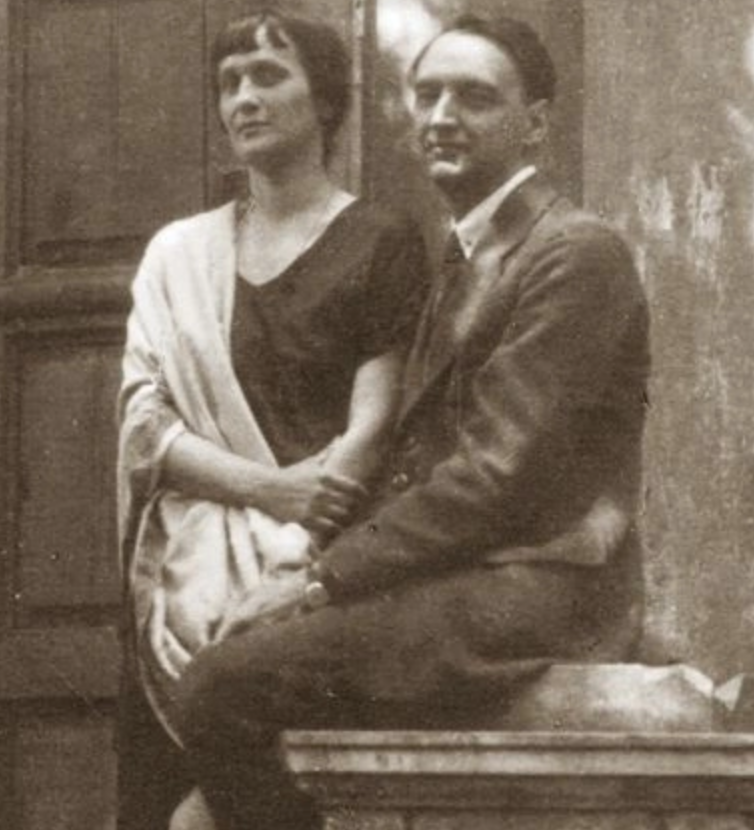 Гуляющая пара — Поэт, сдержанно декламирующий стихи, и Муза в шали, восхищённая его чтением.