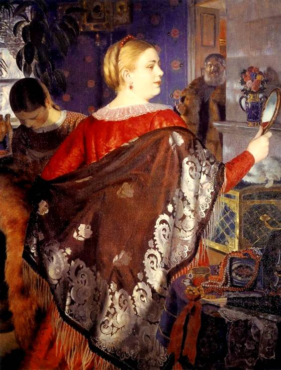 Б. Кустодиев "Купчиха с зеркалом", 1918 год