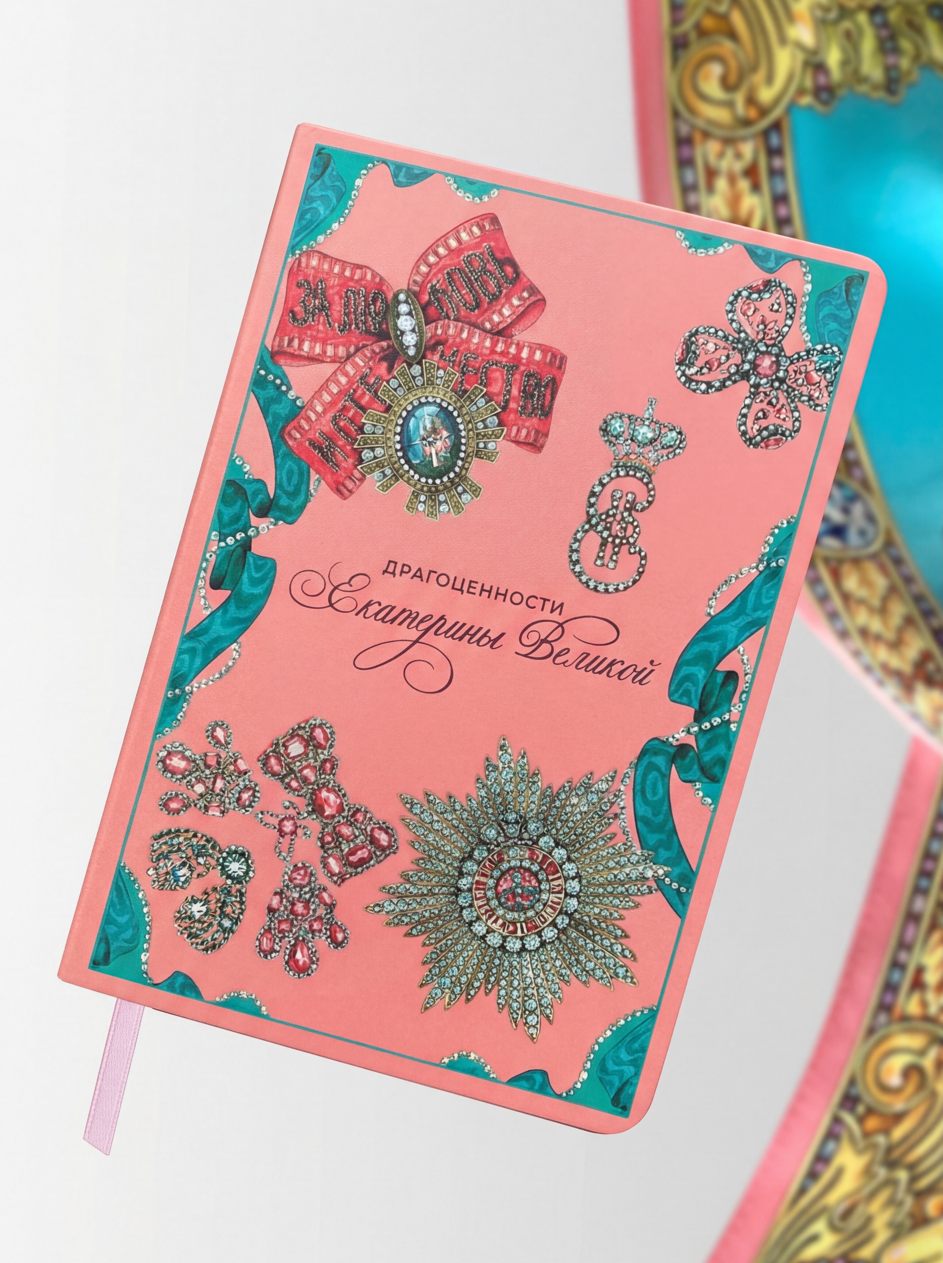 Блокнот «Драгоценности Екатерины Великой» от бренда «Русские в моде» - это художественный этюд об увлечении императрицы шедеврами ювелирного искусства, над изготовлением которых трудились самые прославленные мастера.