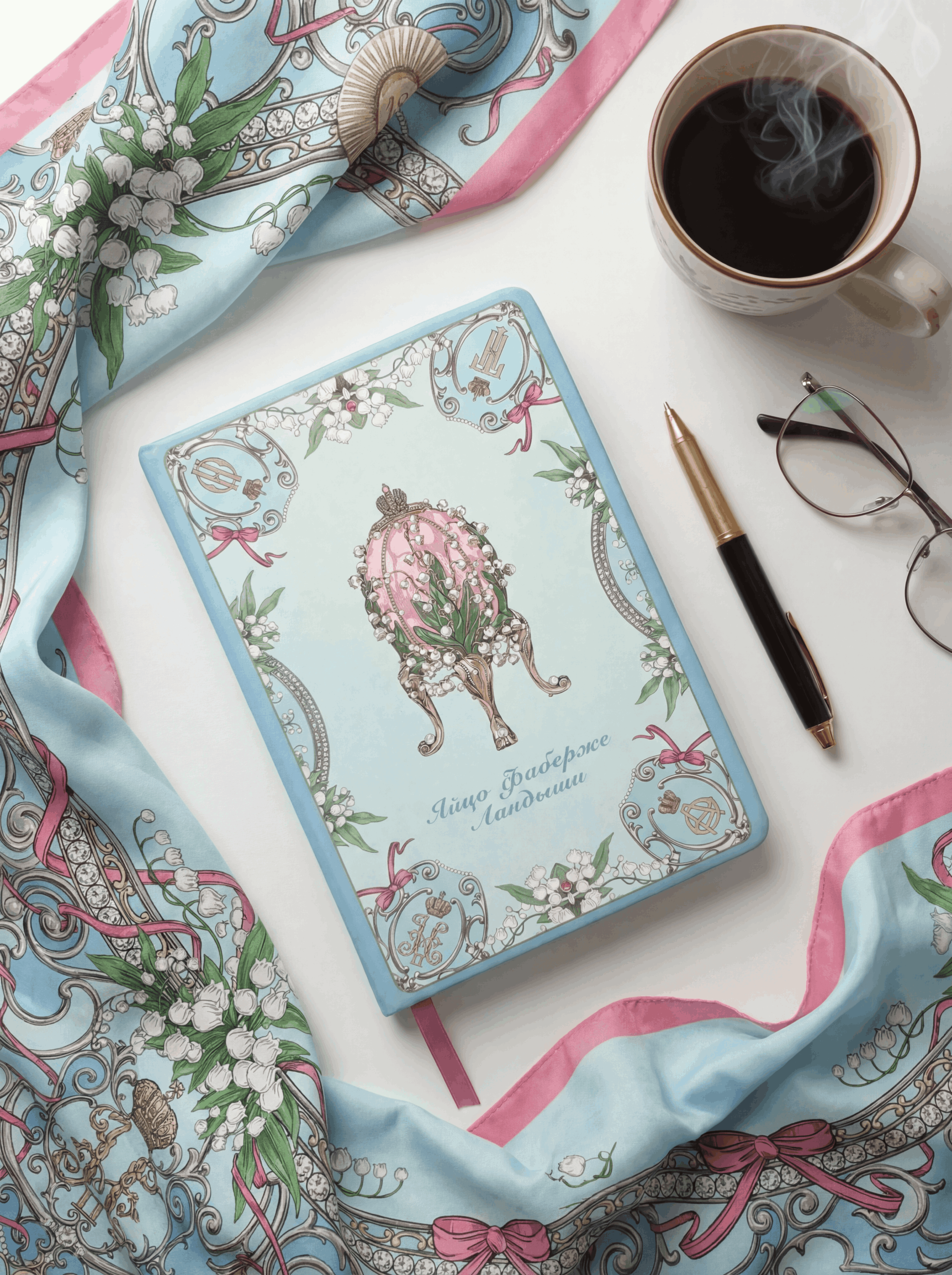 Удивительная нежность, изящество и чистота — это первые ассоциации, рождающиеся в голове при знакомстве с блокнотом «Яйцо Фаберже Ландыши» от бренда «Русские в моде» by Nina Ruchkina.