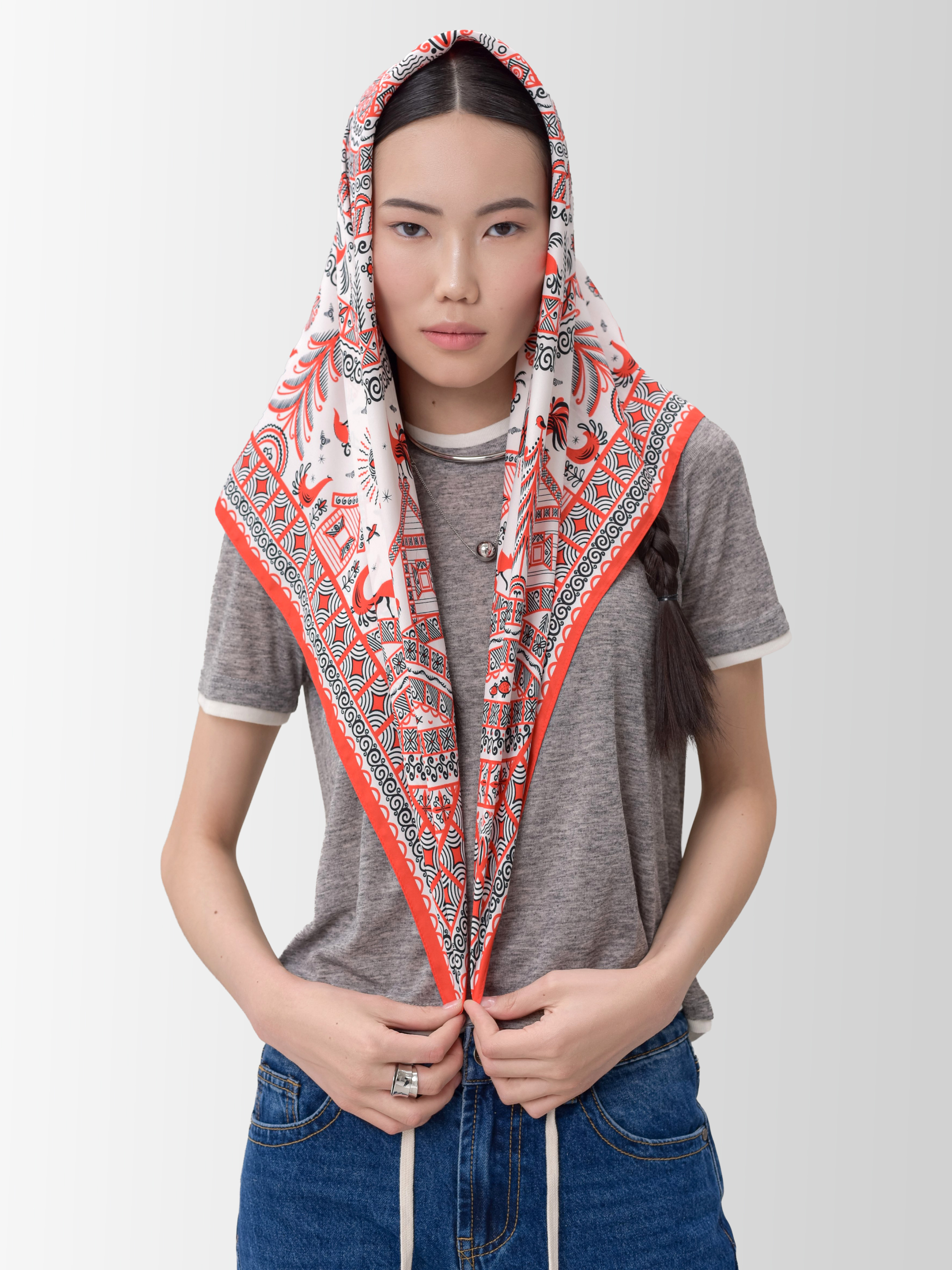 Шелковый аксессуар с красно-черной древней росписью и откликами русской истории гармонично дополнит собой элегантный наряд, станет роскошным оберегом для Вас! Он эффектно завершит образ, расставит недостающие акценты и подчеркнет Вашу уникальную красоту!