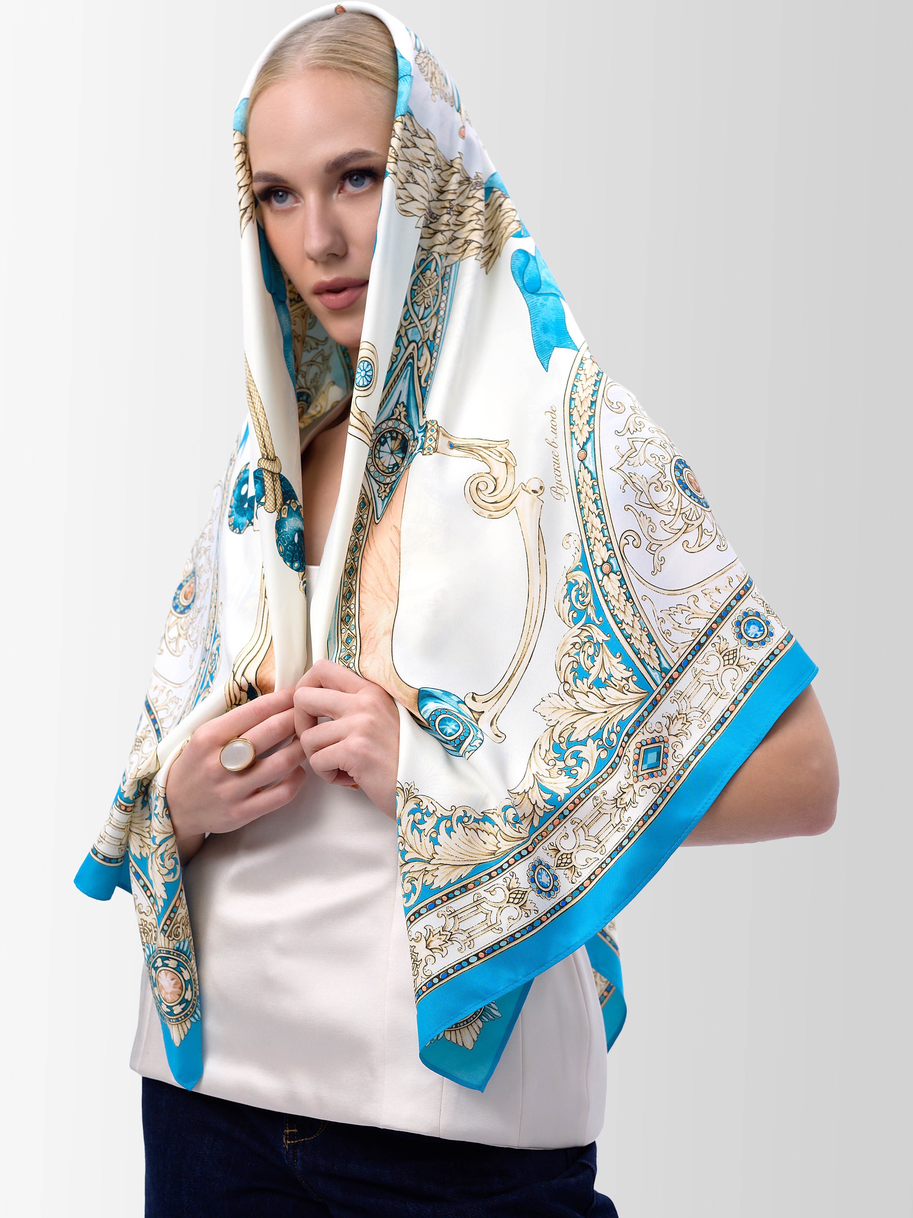ЭФЕСЫ!!!!!!!!! Шикарно звучит, достойно выглядит!!! Размер платка настолько удачен, что может быть использован не только в качестве головного убора, но и любого другого вида одежды. Когда имеешь такой "инструмент" под рукой, то Творчество тебя поднимает до Небес!!! Браво Создателям этого Произведения.Ну, а открытка со стихами только подтверждает: "да, РУССКИЕ НЫНЕ В МОДЕ".