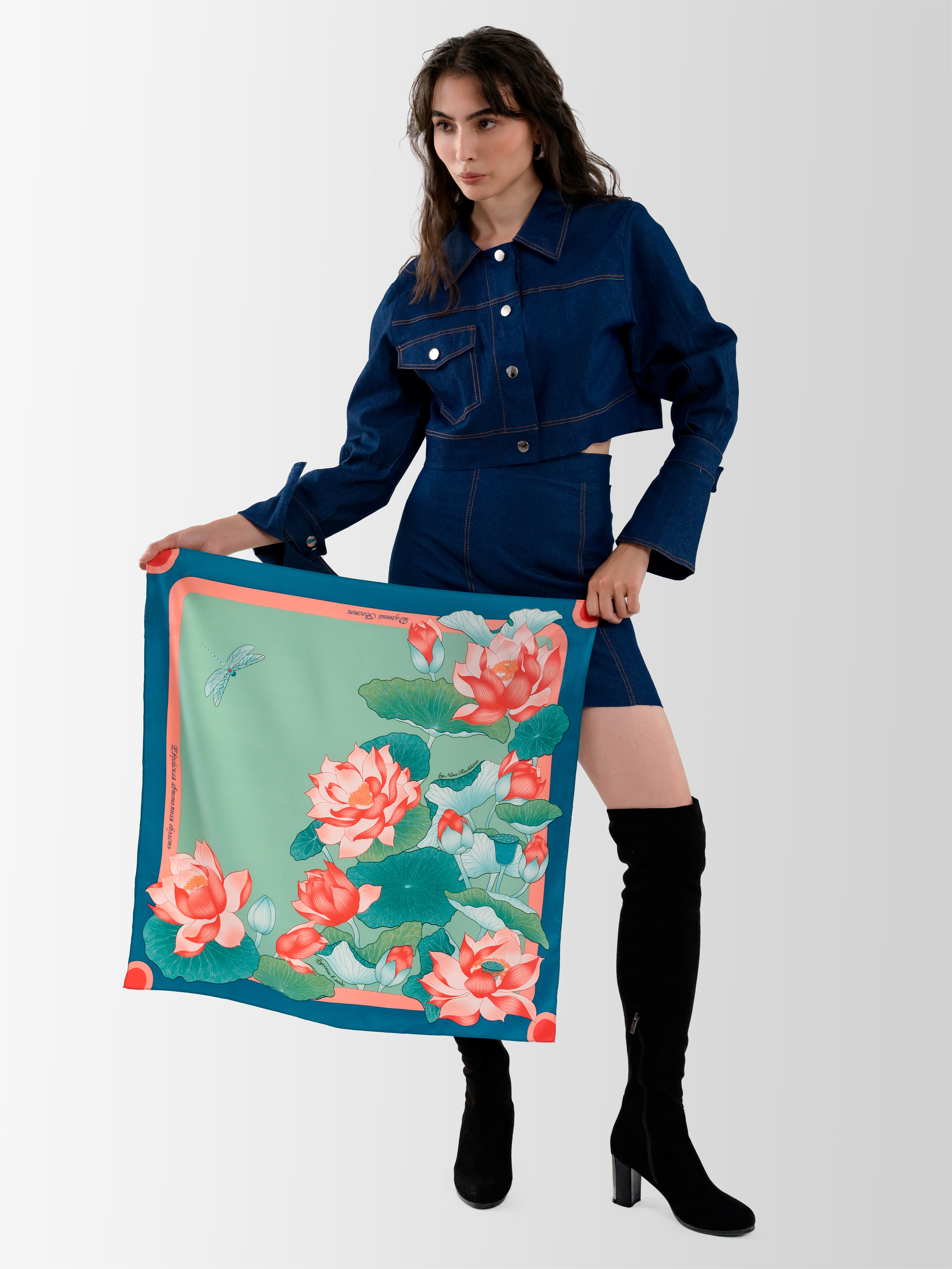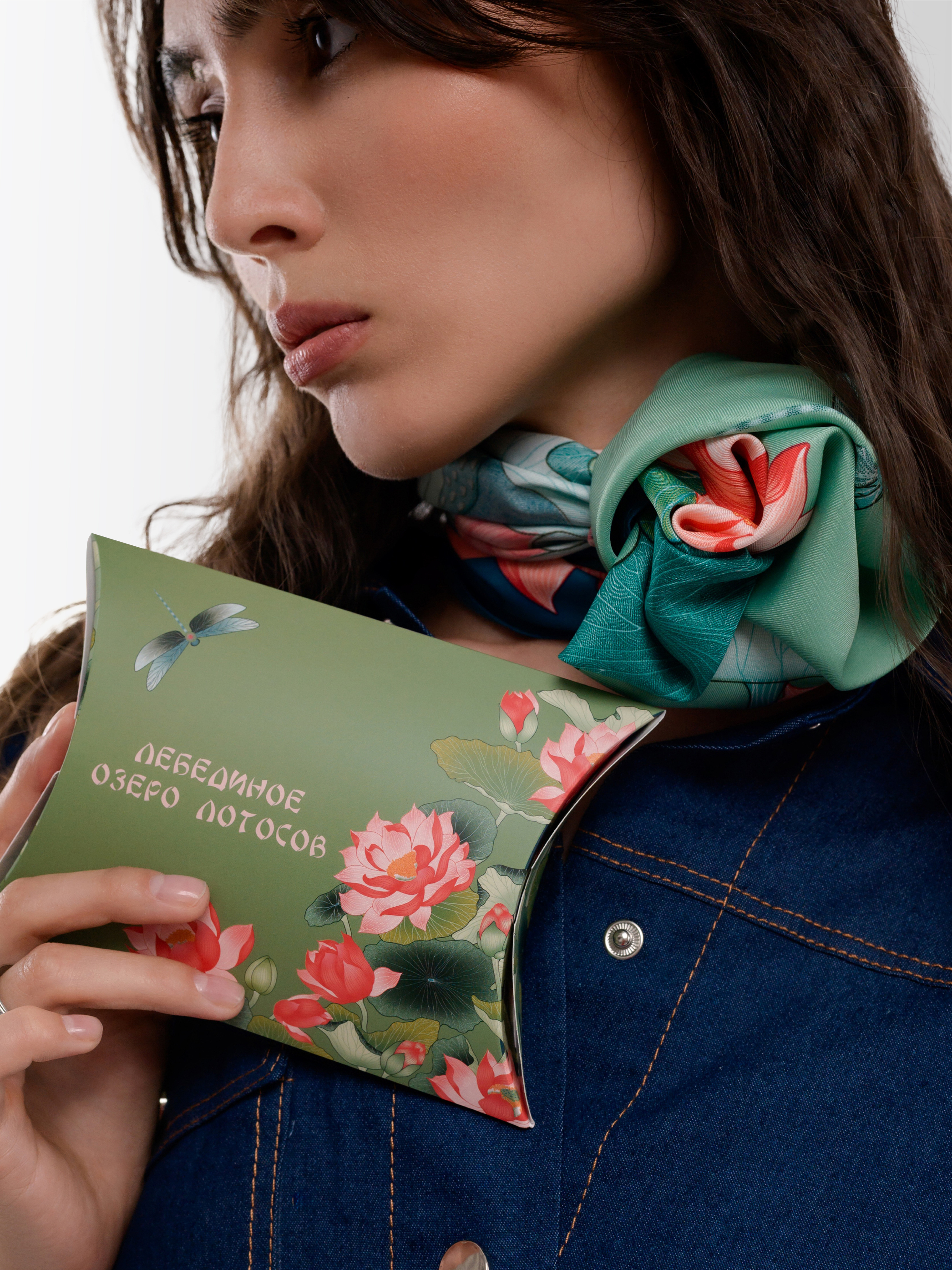 Выразительный платок «Лебединое озеро лотосов» станет ярким акцентом образа и памятным подарком о Дальнем Востоке и Еврейской автономной области!