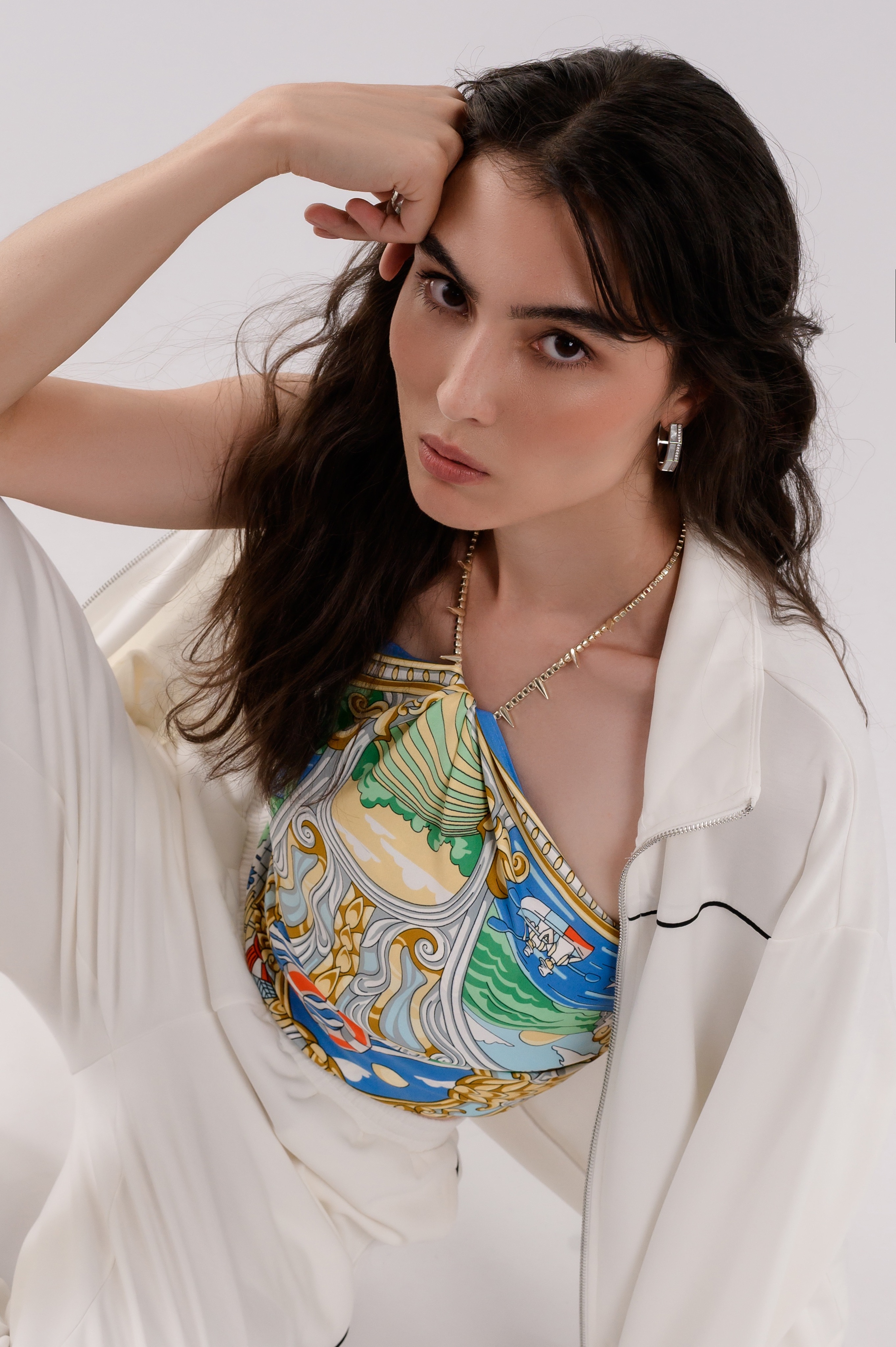 Платок «Легендарный Артек» создан брендом «Русские в моде» совместно с самым большим международным детским центром «Артек», отметившим столетний юбилей.