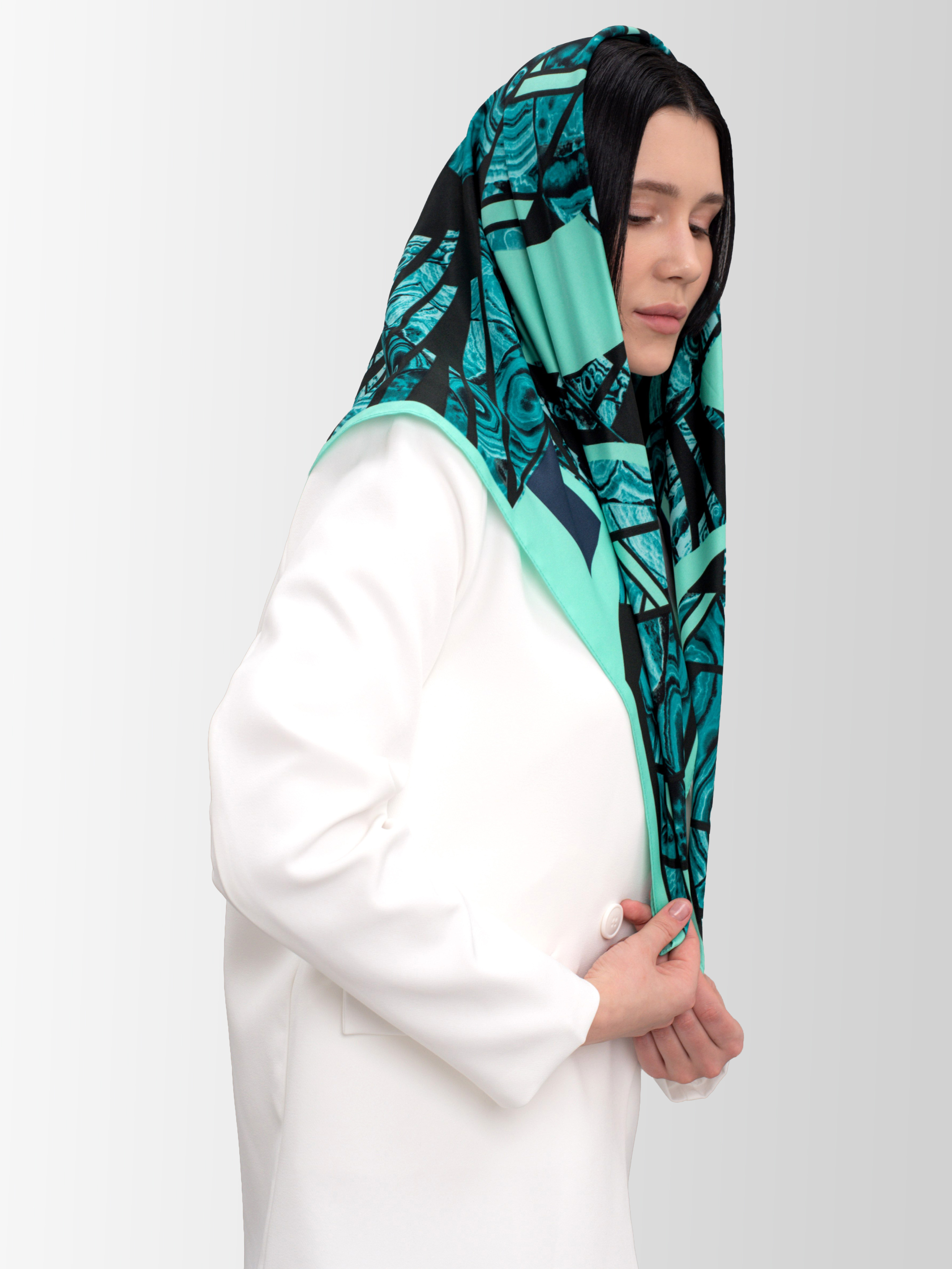Замечательный платок, нежный, не соскальзывает, ну и конечно красота, чувствуешь себя Хозяйкой медной горы.