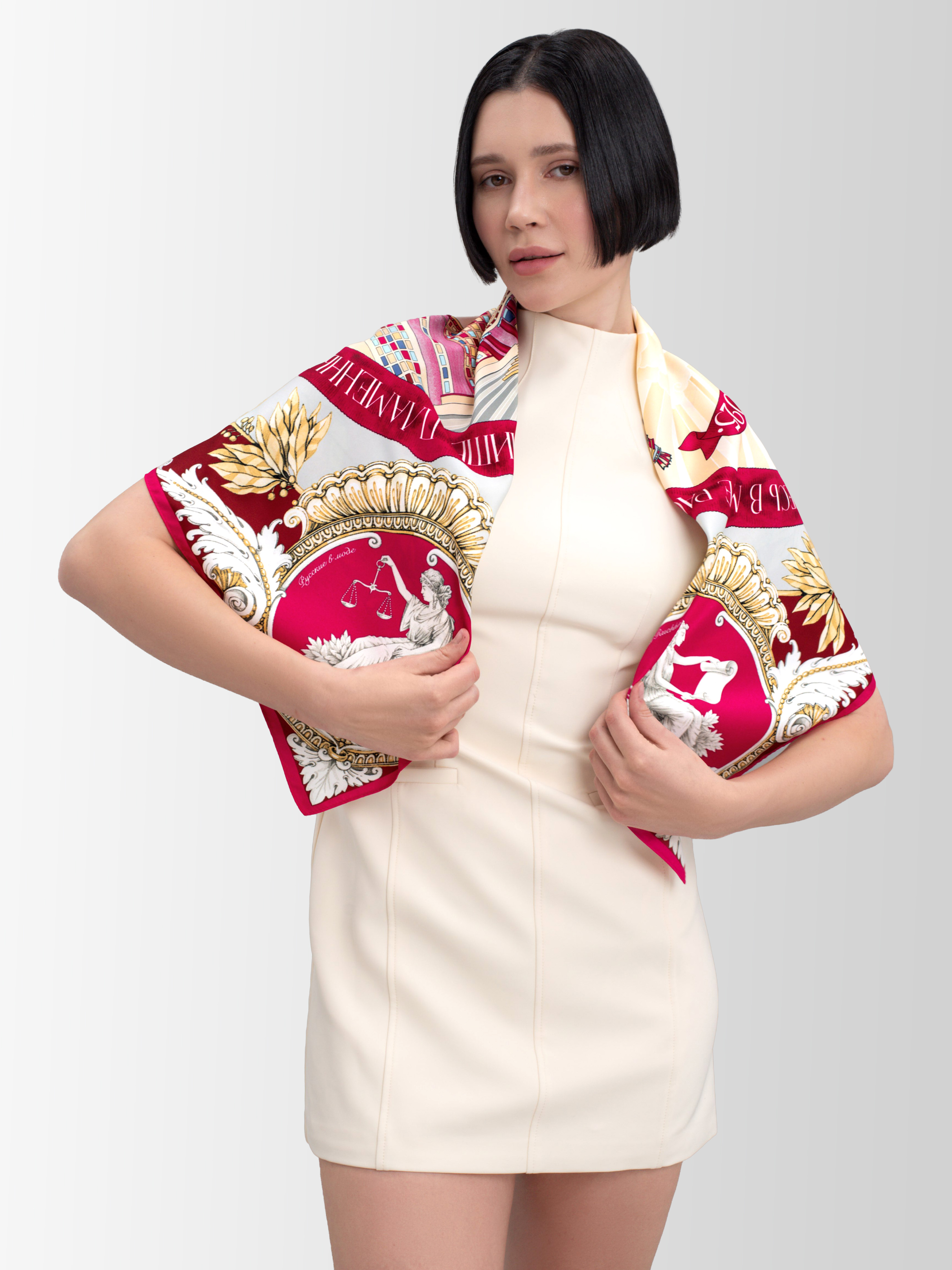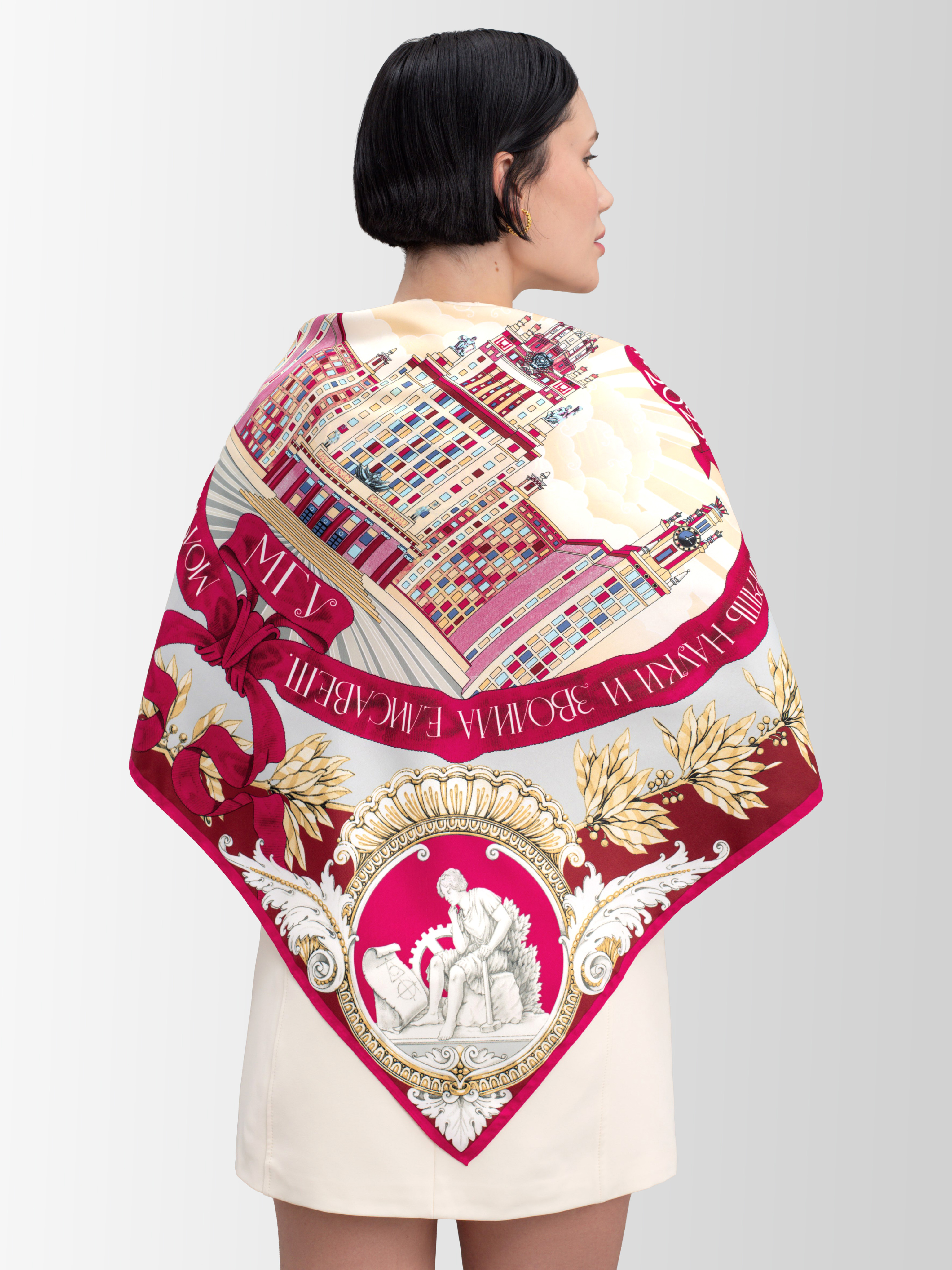 Потрясающий платок♥️ Ткань мягкая , оттенок глубокий , насыщенный , дизайн великолепный. Сочетание цветов , рисунок - все прекрасно ! Прекрасный подарок студентке МГУ🌺