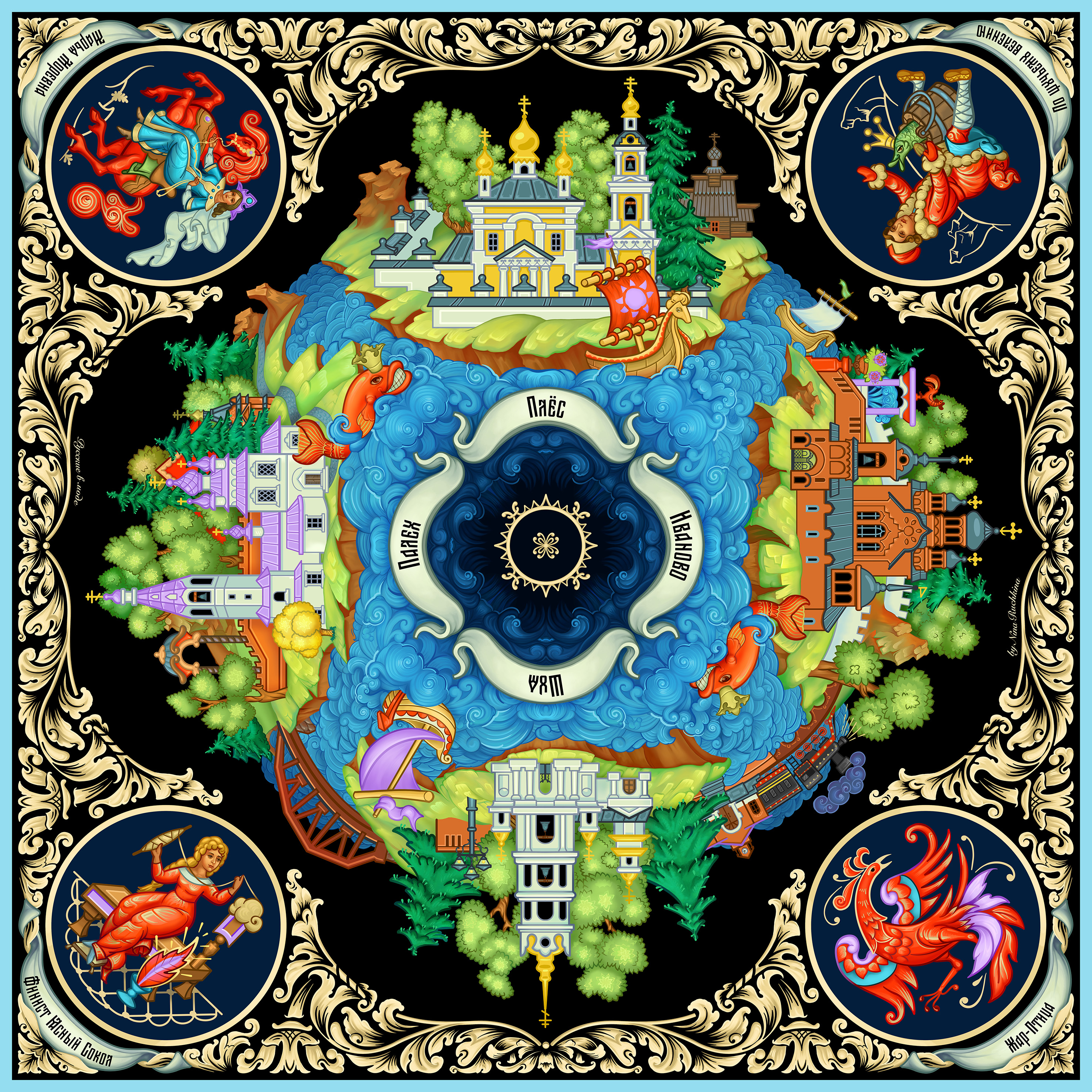 Платок «Палех» 100% шелк