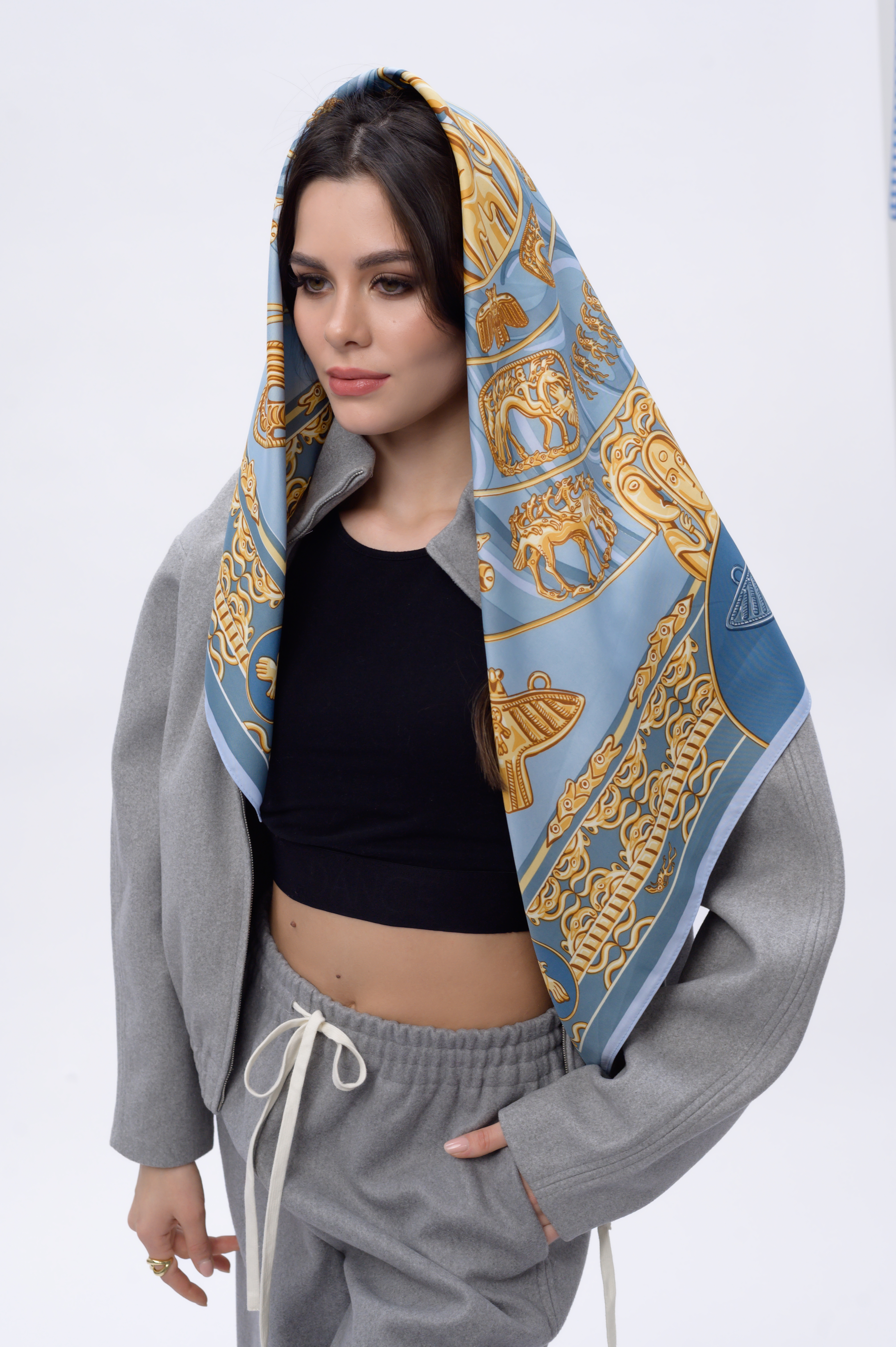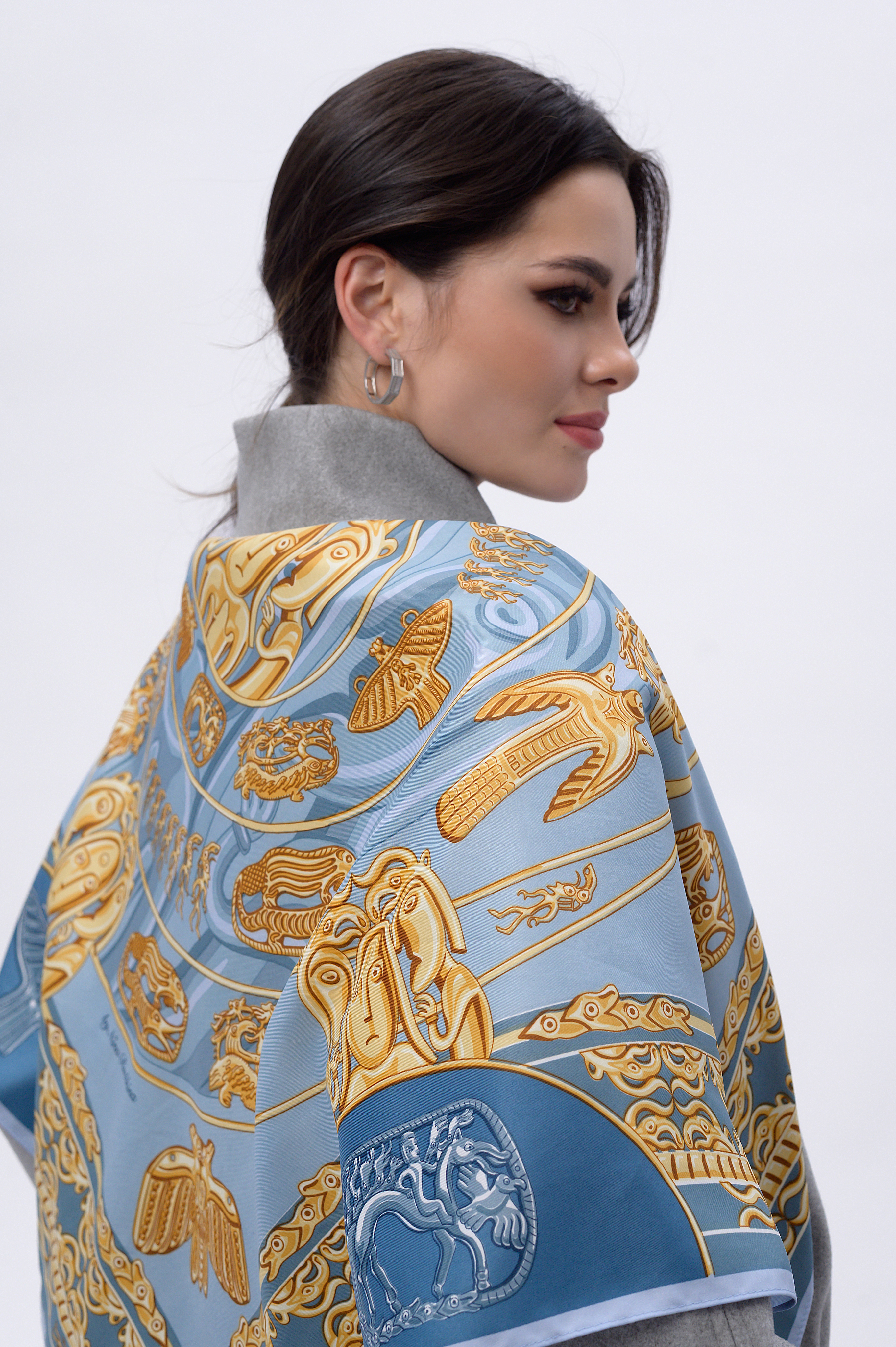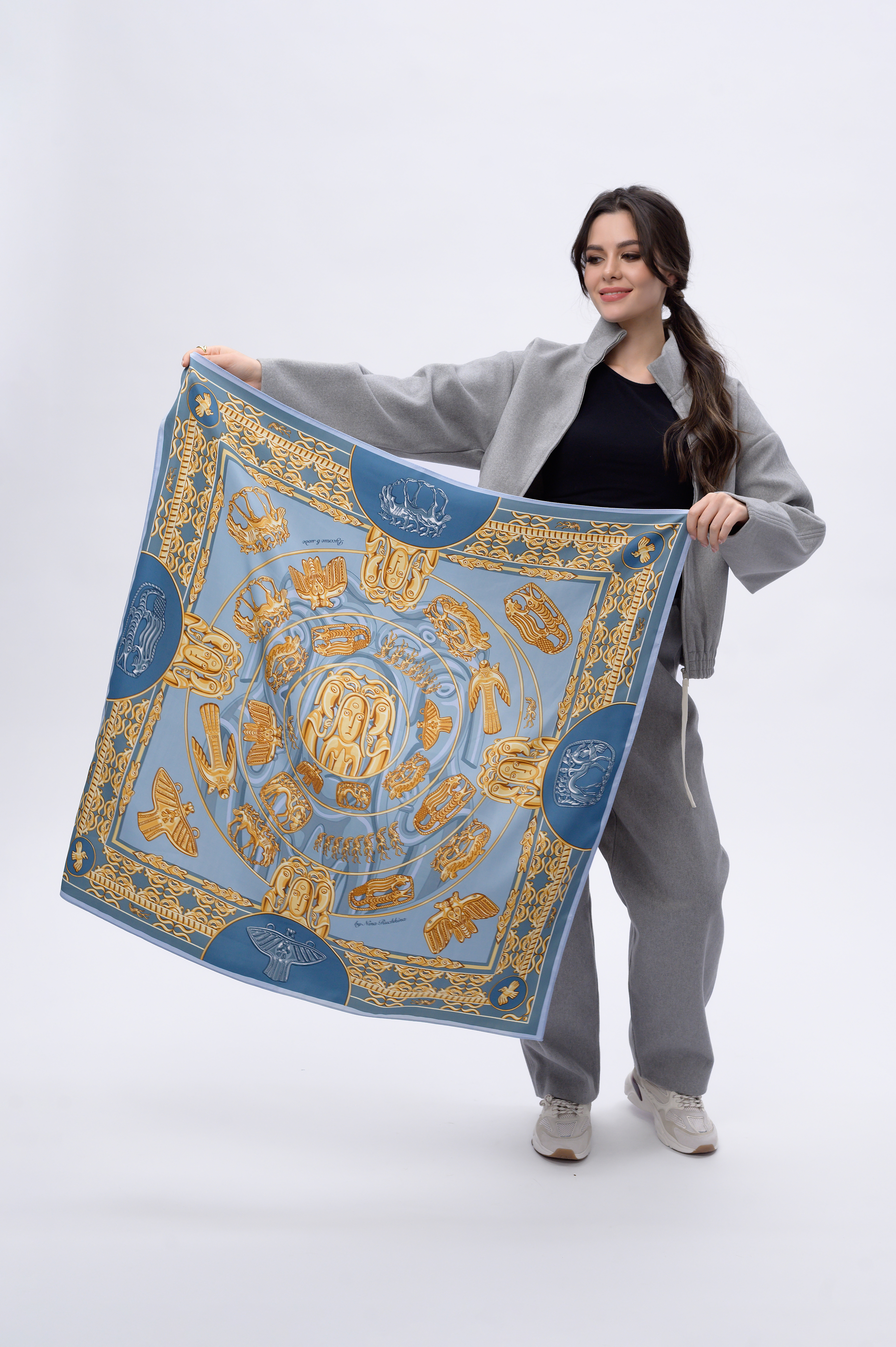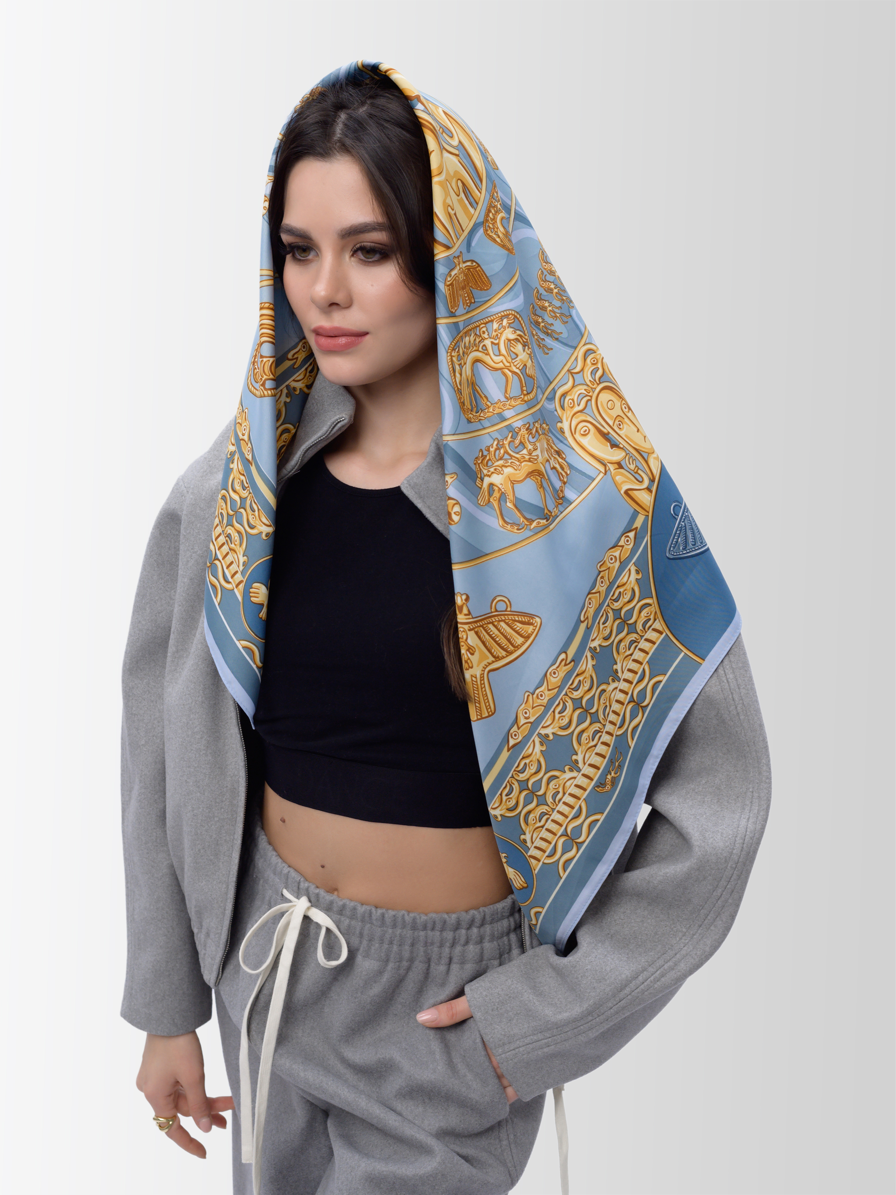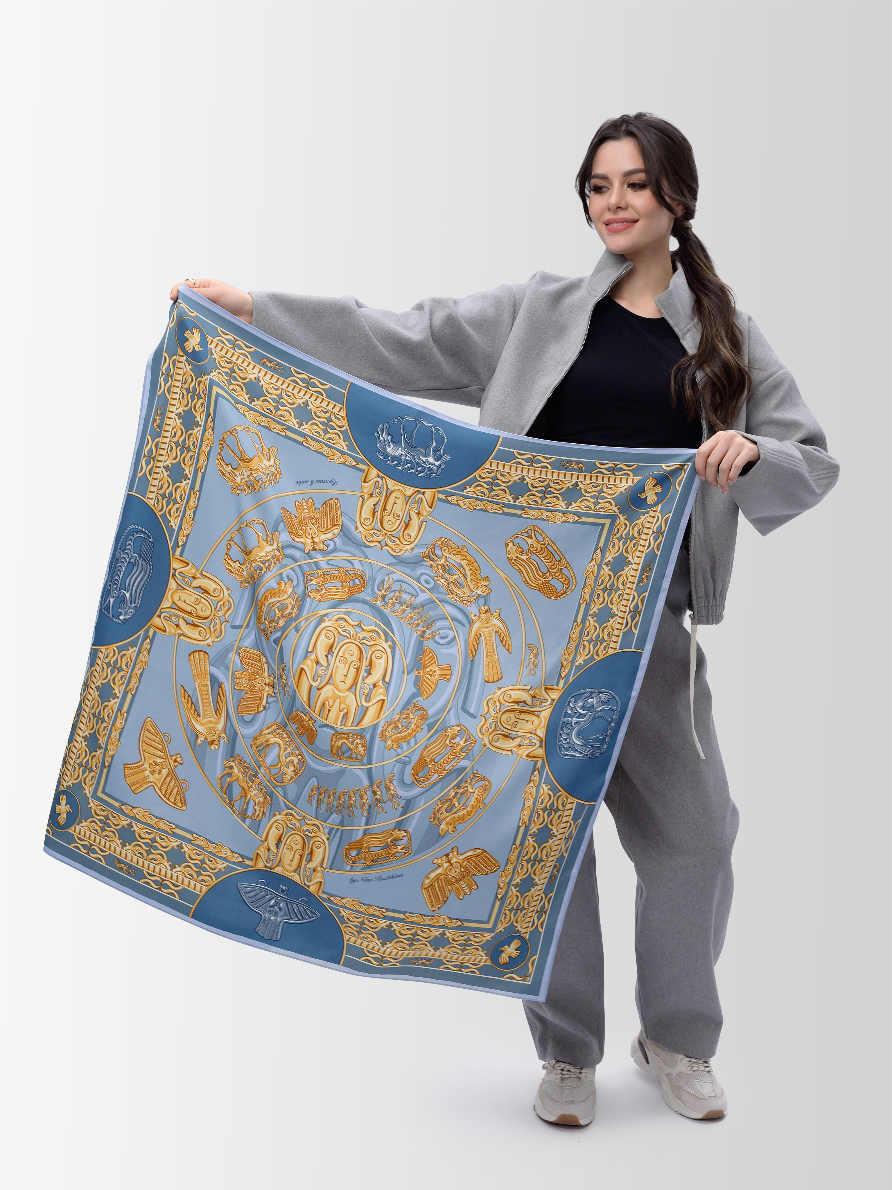 платок-чудо! цвета какие! желтый золотой с синим-одно из лучших сочетаний. и сама тема весьма интересная. почему ВСЕ платки позиционируются как женские? в основном да,конечно,но есть вполне мужские модели,носить с рубашкой-самое то!