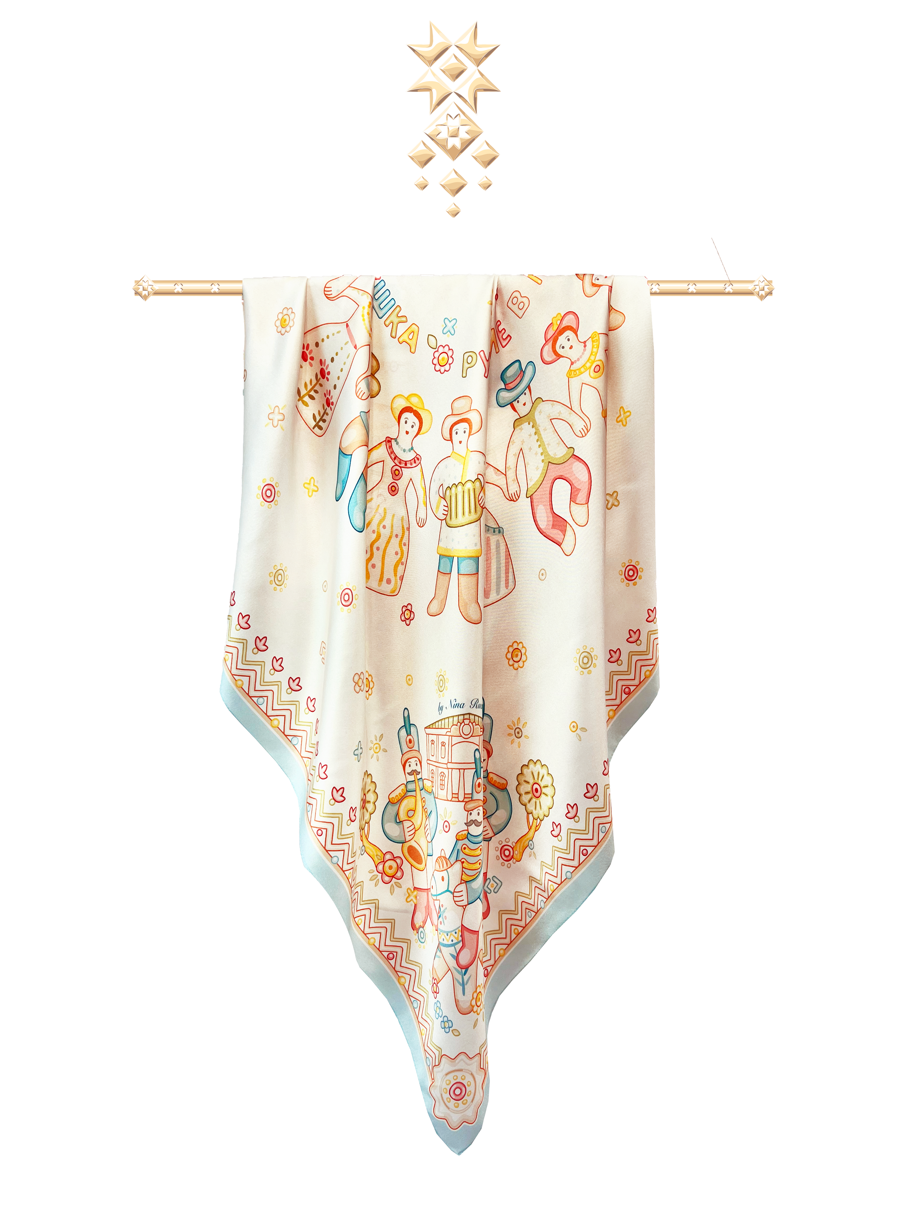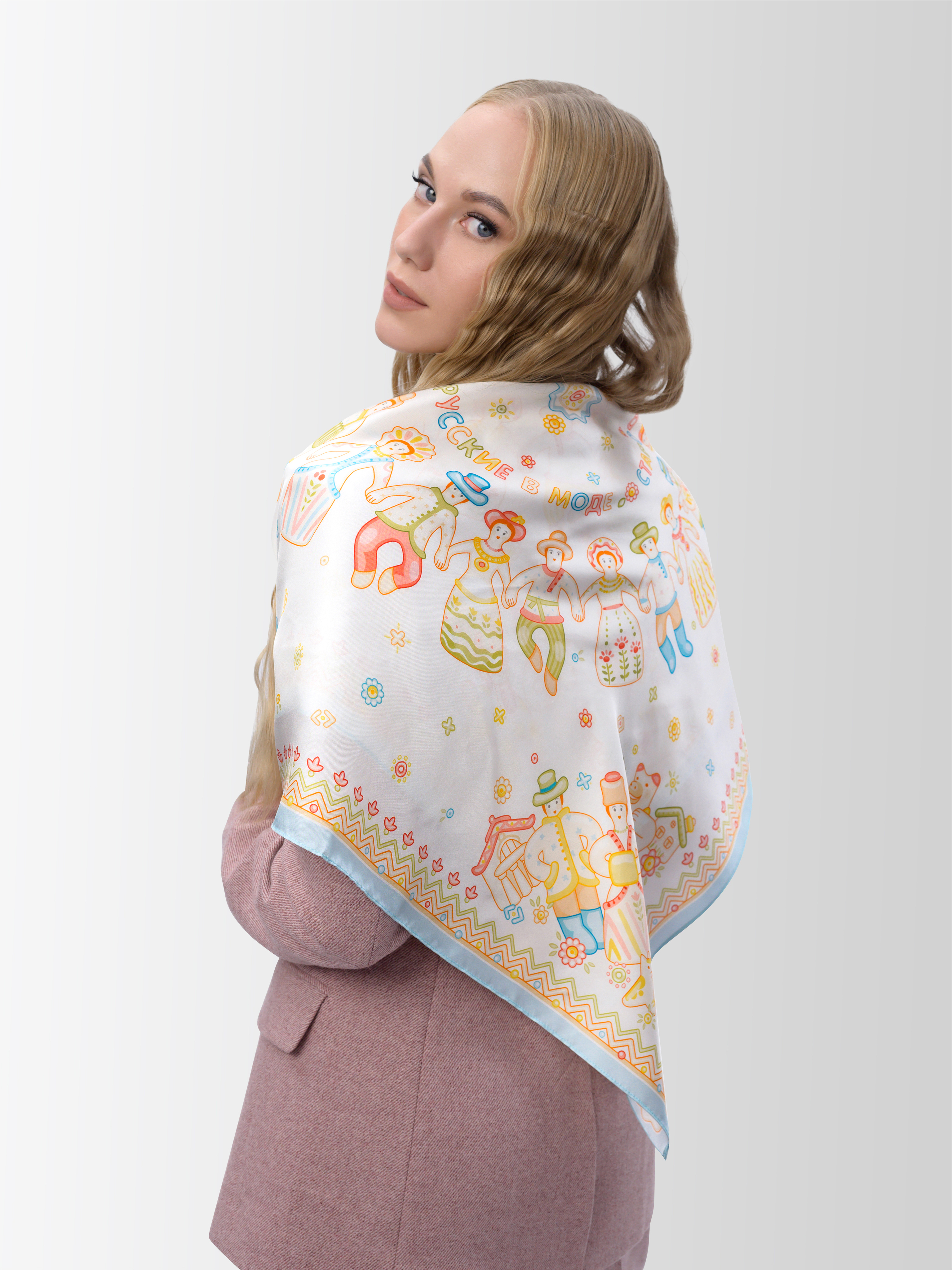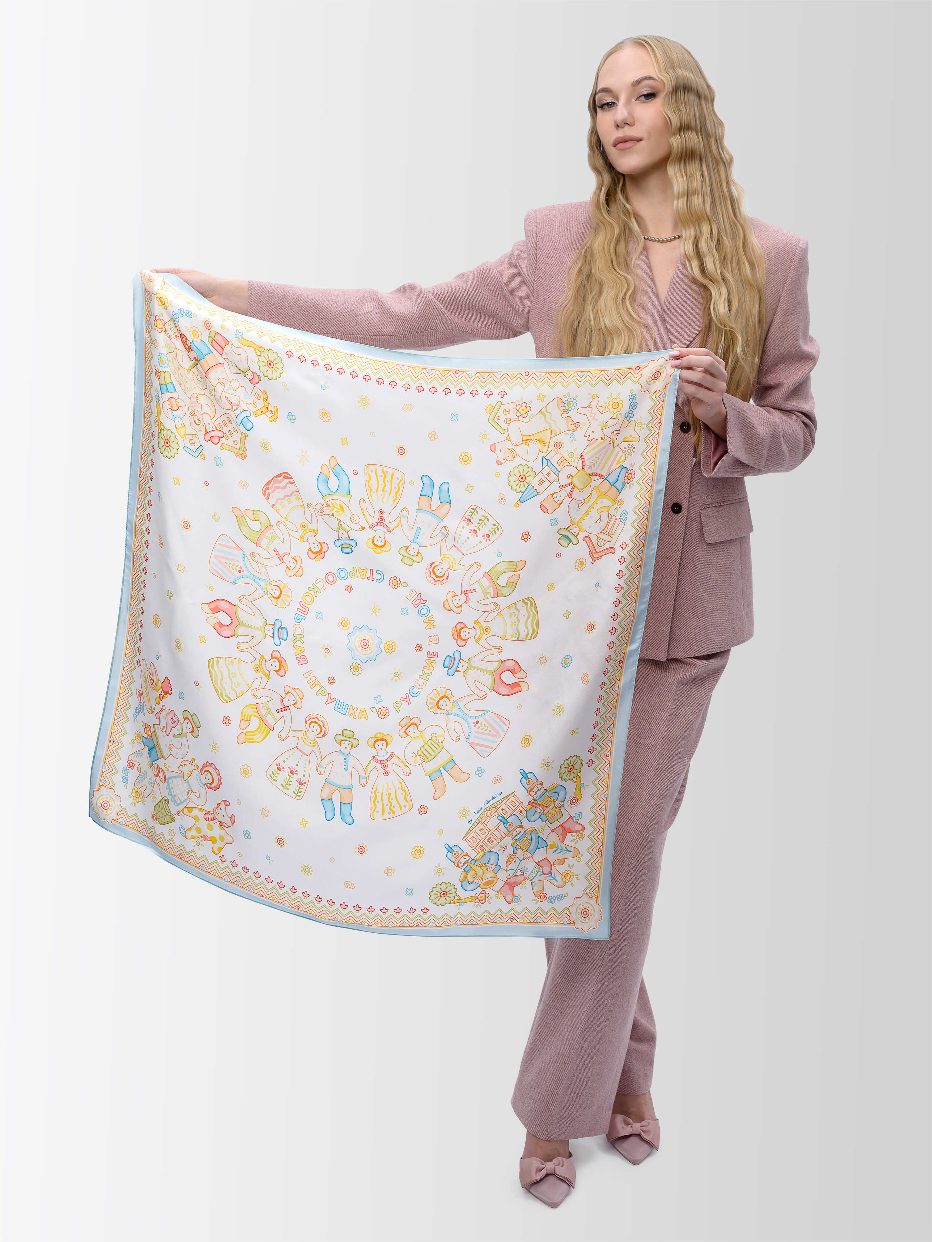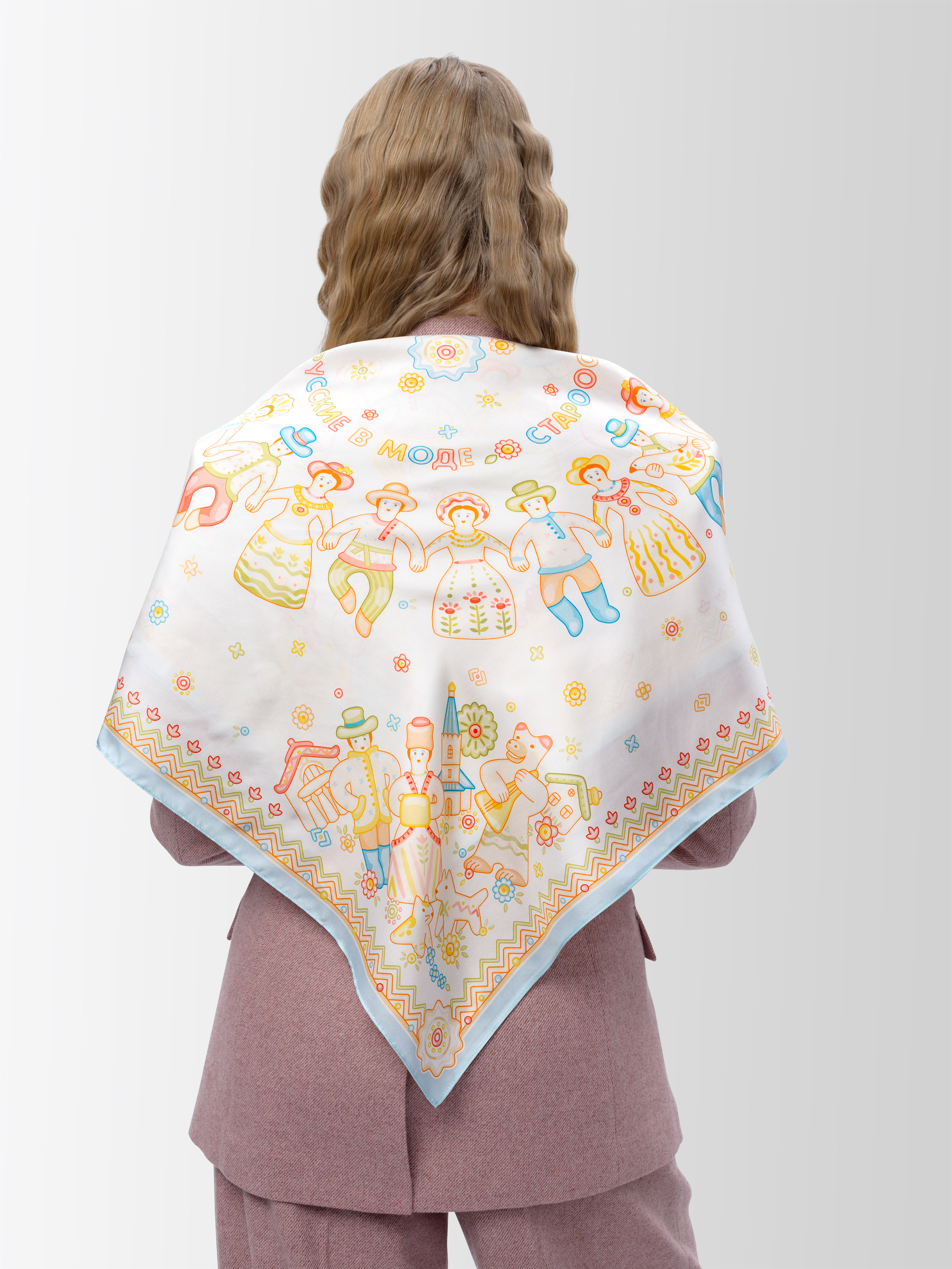 Прикоснитесь к удивительной красоте традиций вместе с платком «Старооскольская игрушка»  изящному аксессуару, непременно приносящего своей обладательнице счастье и радость!