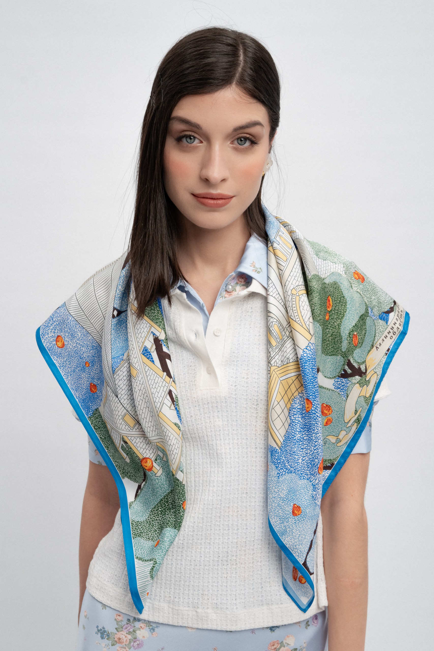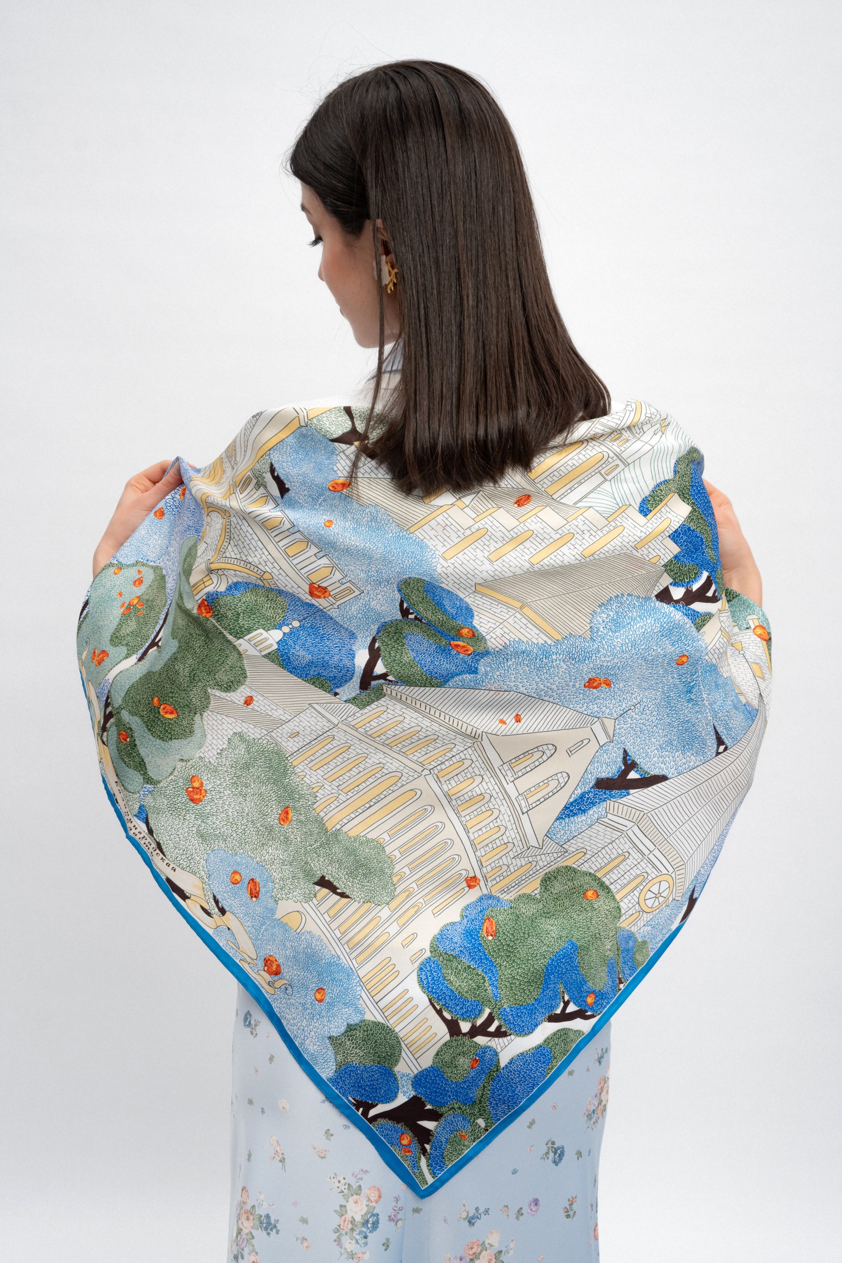 Платок «Янтарный берег», преисполненный величием и гармонией, станет прекрасным дополнением стиля или подарком, напоминающем о неповторимом облике России.