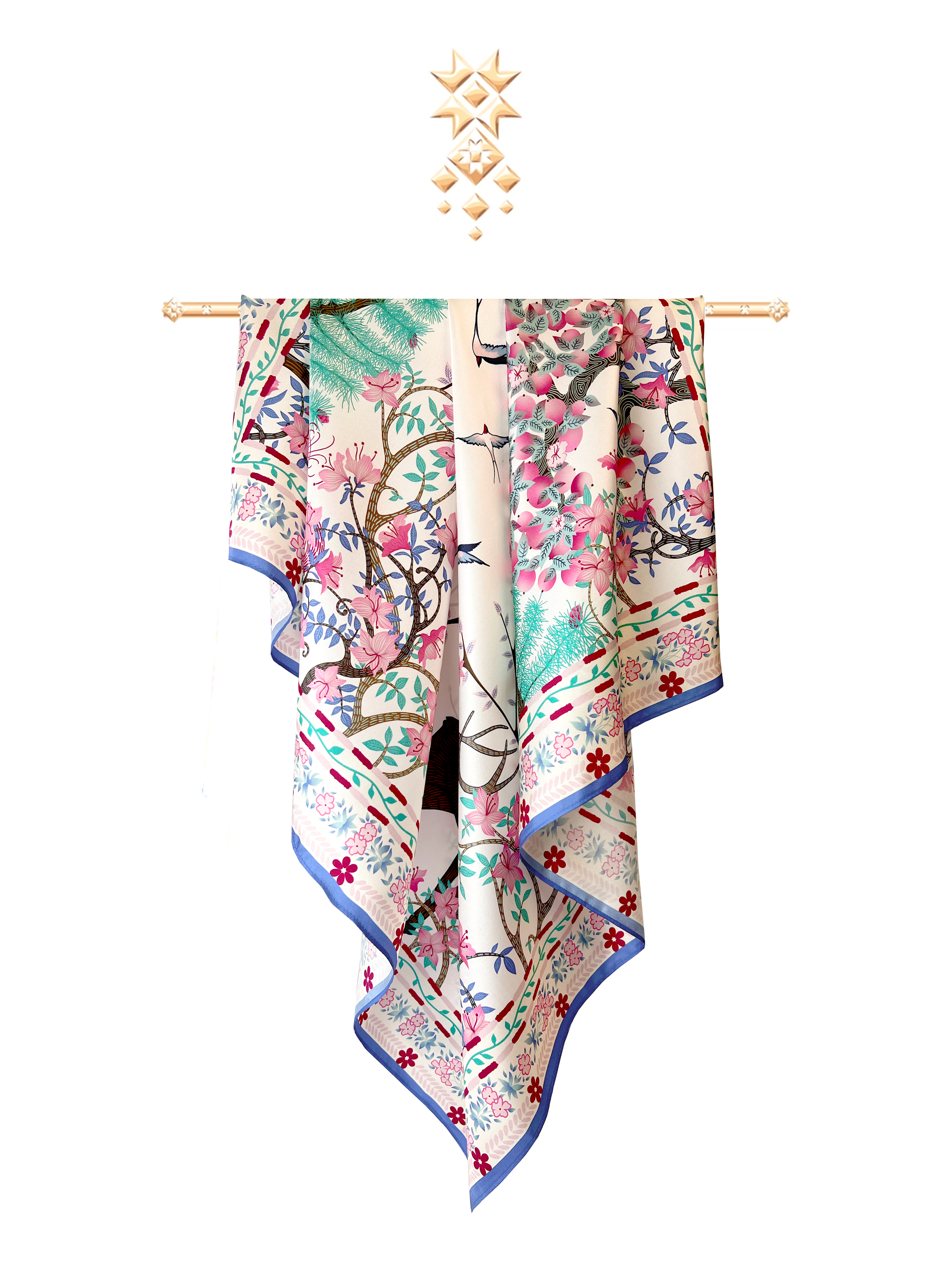 Нежный платок «Забайкалье» вдохновлен идиллией первозданной природы Забайкальского края, художественно отображая мир гармонии.