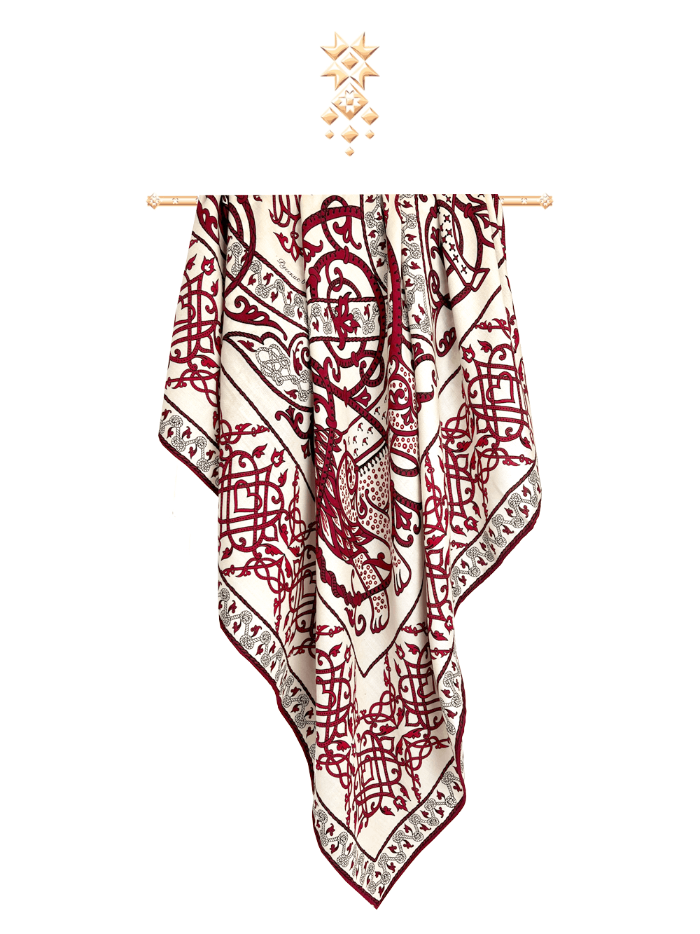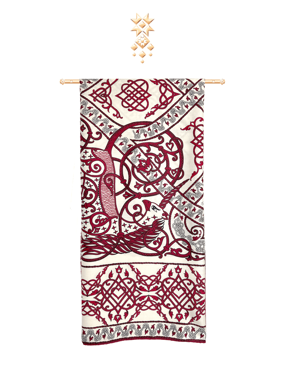 Красоту русской души, сопряженную с верой, отражает изобразительный мотив шали, восходящий к иллюстрациям альбома «Собрание византийских и древнерусских орнаментов» (1887). Уникальный труд, взятый за основу, демонстрирует величие византийского стиля, который по мнению автора-составителя князя Г.Г. Гагарина: «идеально отвечает православной эстетике в неразрывной связи с древнерусским искусством».