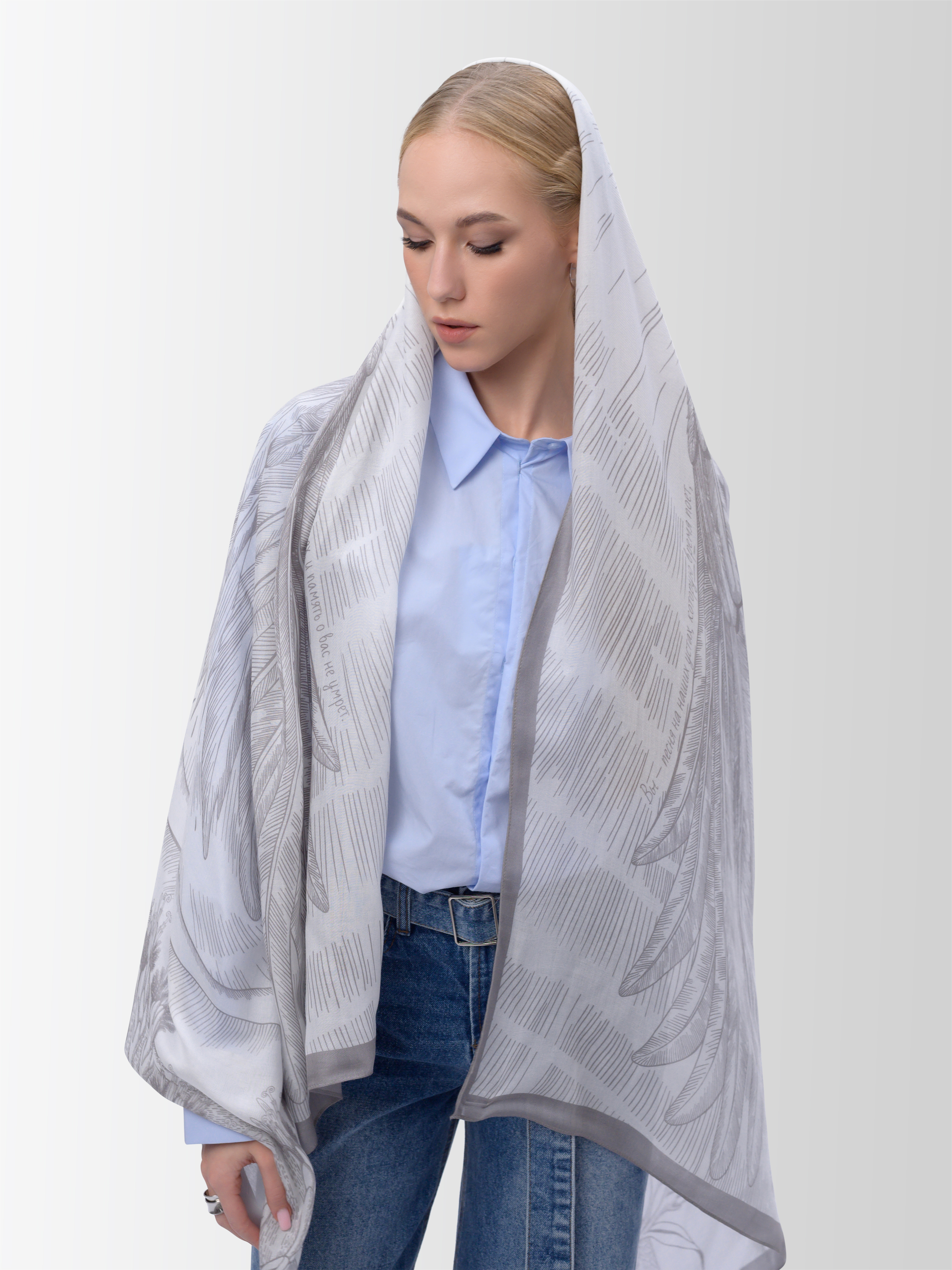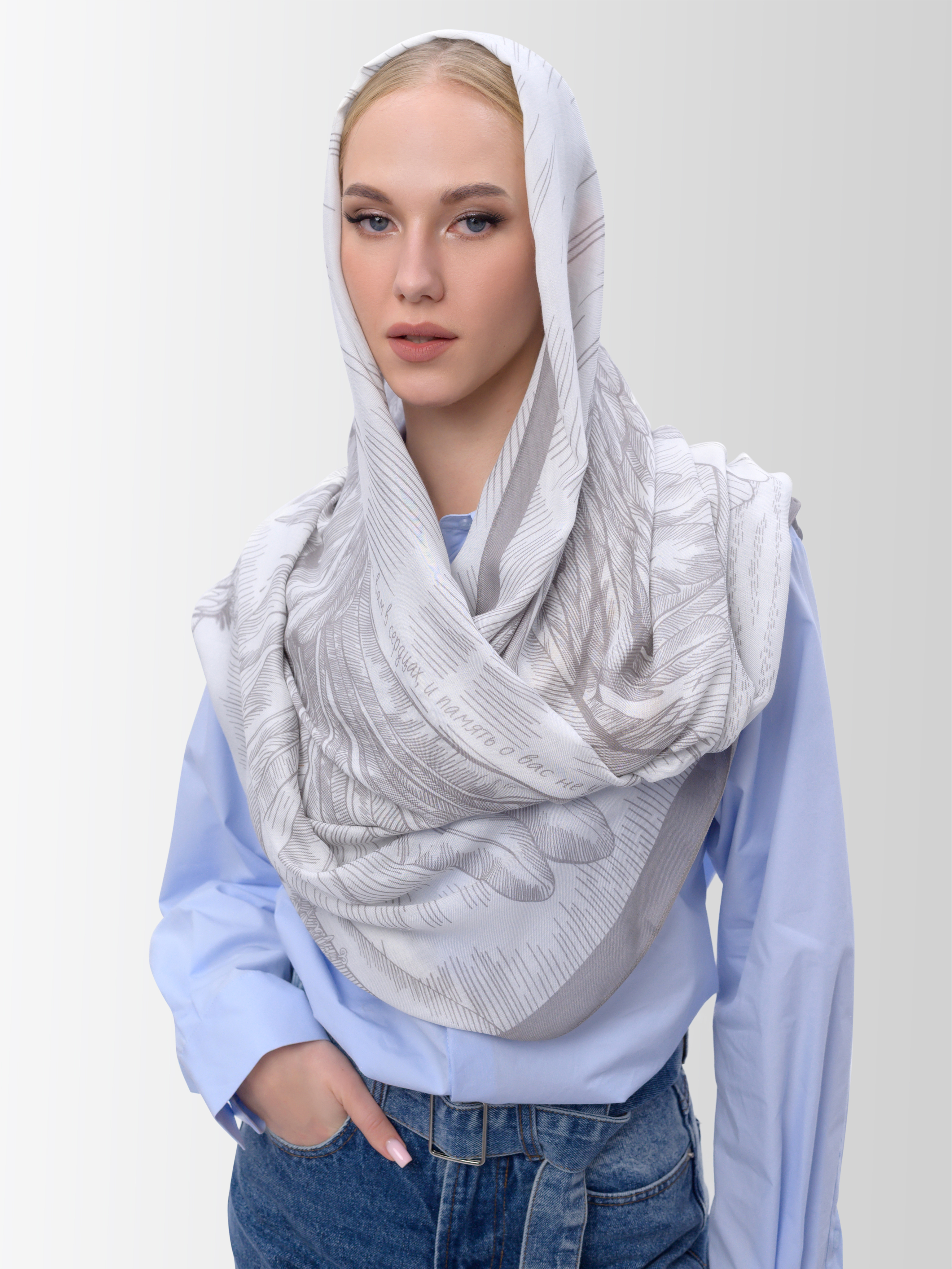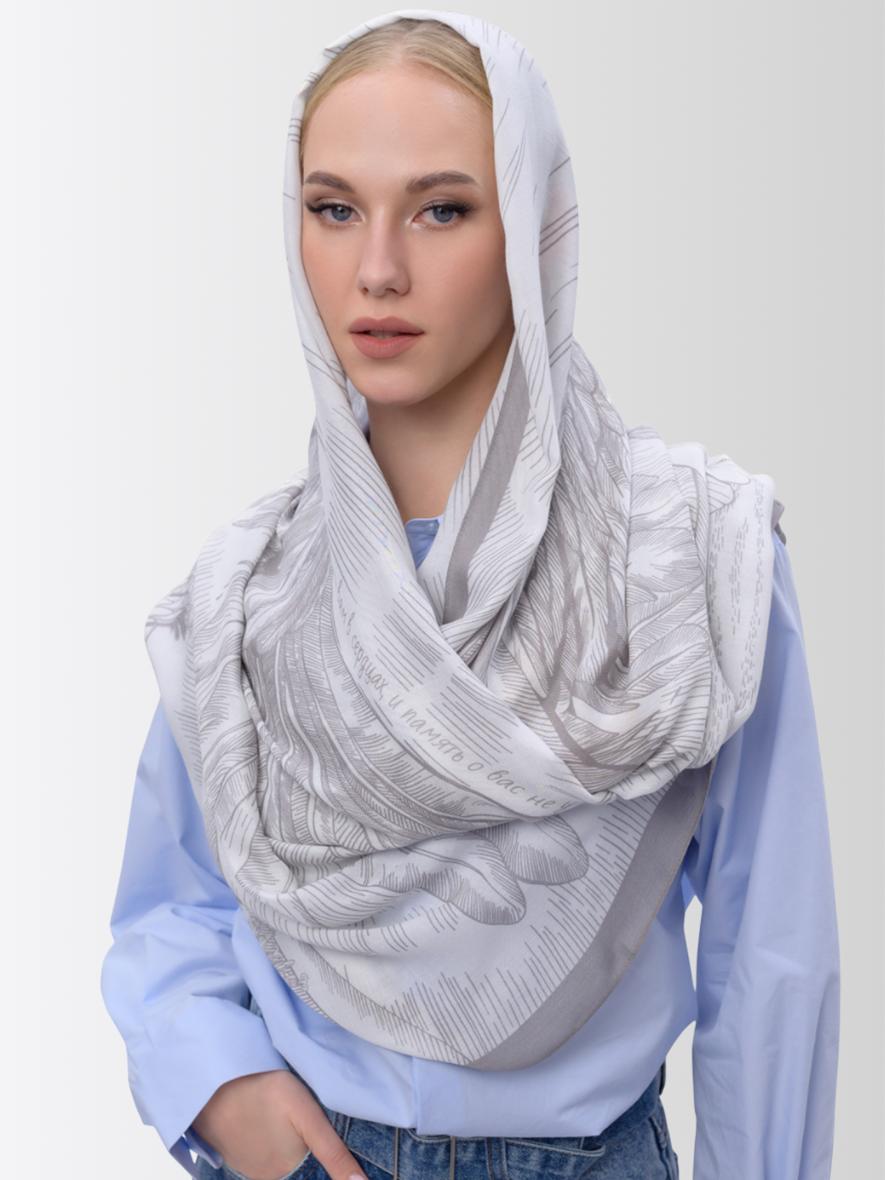 Палантин «Жить за двоих» посвящен родным и близким Защитников Родины.