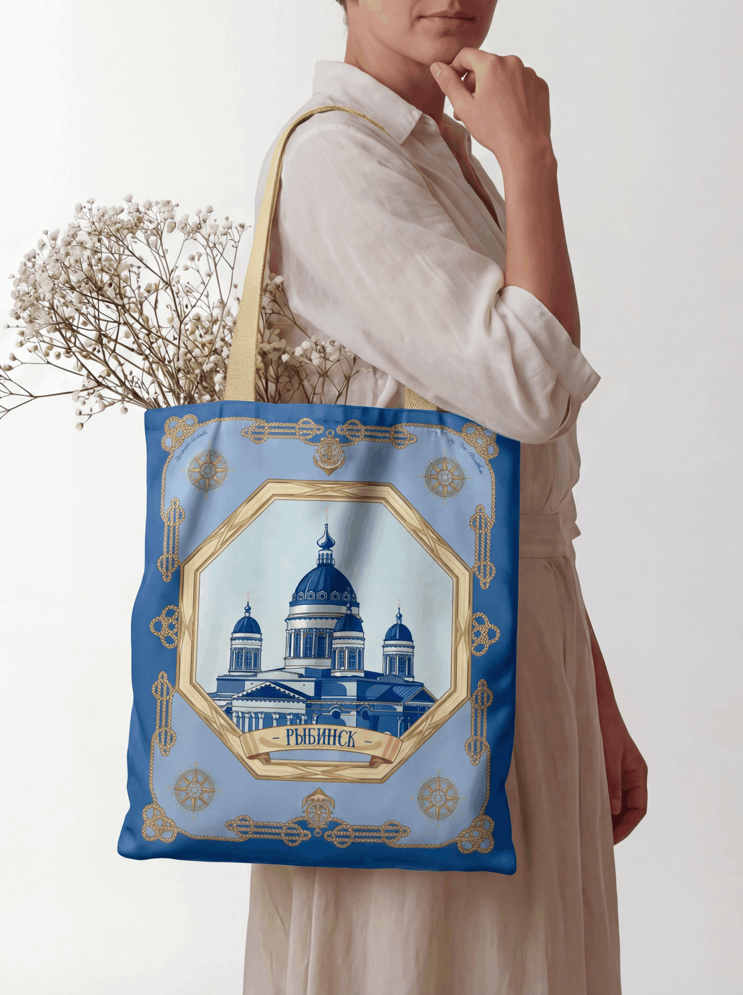 С другой стороны шоппера расположена стилизованная композиция, посвященная Спасо-Преображенскому кафедральному собору — одному из главных символов Рыбинска, города с богатой историей, тесно связанной с Волгой и речным судоходством.