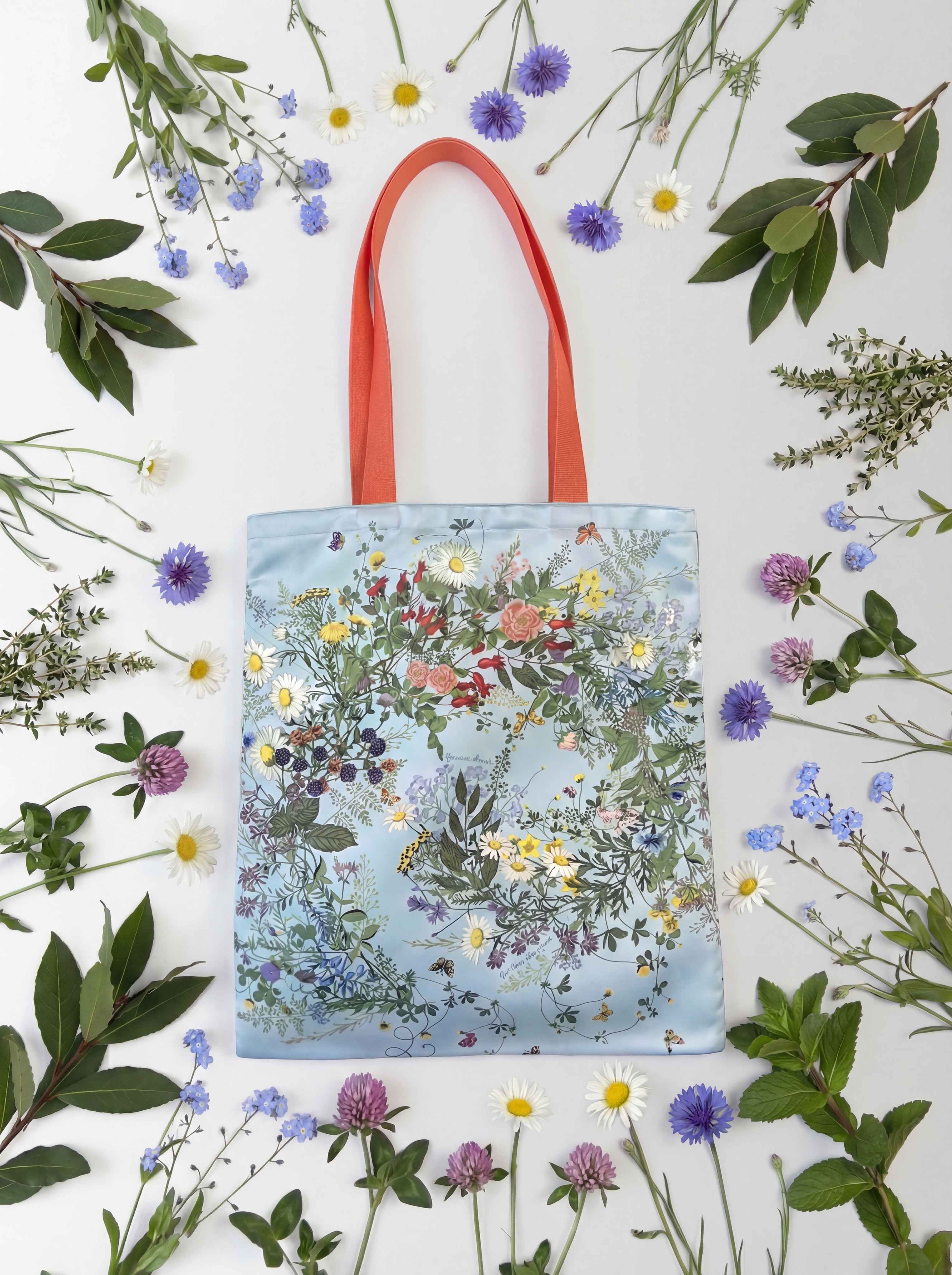 Яркое благоухающее разноцветье русского полевого букета воплощено в дизайне аксессуара, где собраны и изображены более 20 цветов и трав.