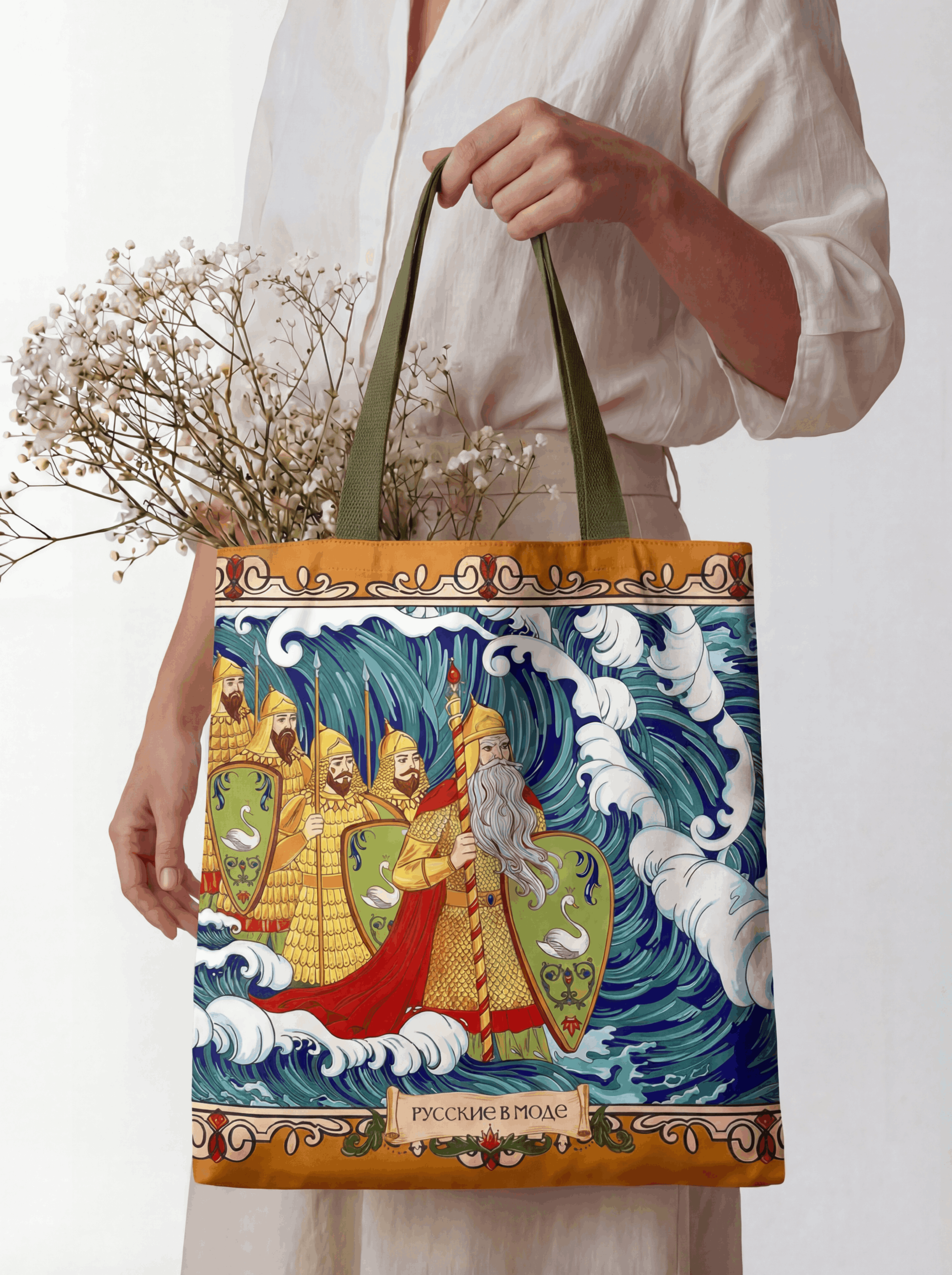 Представляем шоппер по мотивам палантина «Сказка о царе Салтане»!Дизайн аксессуара отсылает нас к сюжету всеми известного произведения А.С. Пушкина с одноименным названием.